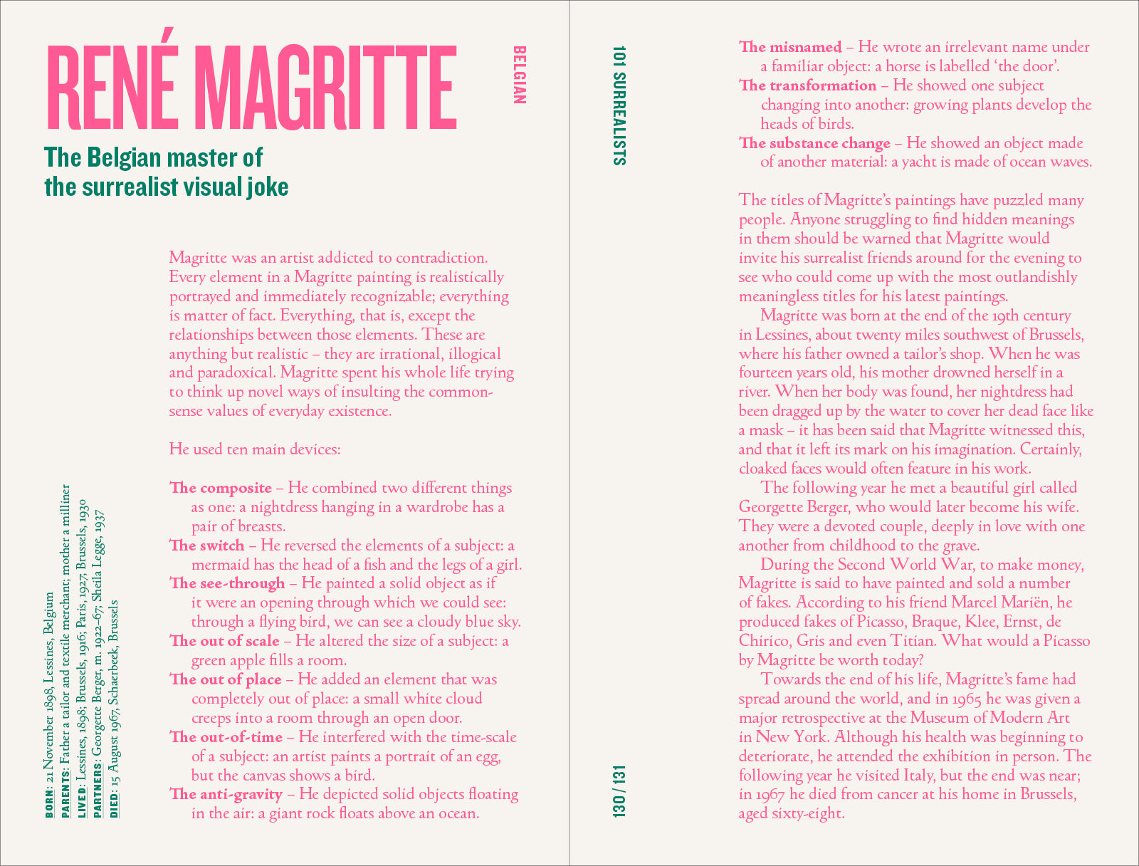 A complement to Morris's earlier biographical volumes, 101 Surrealists encapsulates each artist in new and abridged texts that convey with immediacy the impact and significance of each of the 101 artists featured.