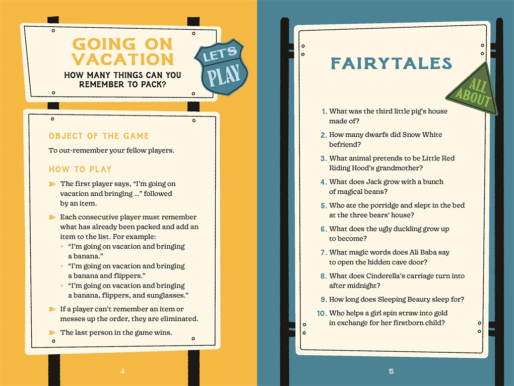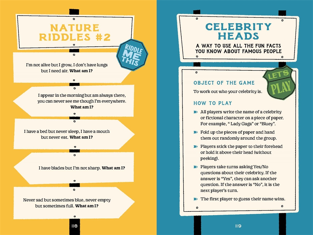 Featuring classic games such as I Spy and Celebrity Heads; plenty of new games; quizzes on your favourite animals, movies, foods, and fairytales; and plenty of riddles, this gorgeously-designed book will keep you entertained for hours and hours, or however long your journey is.