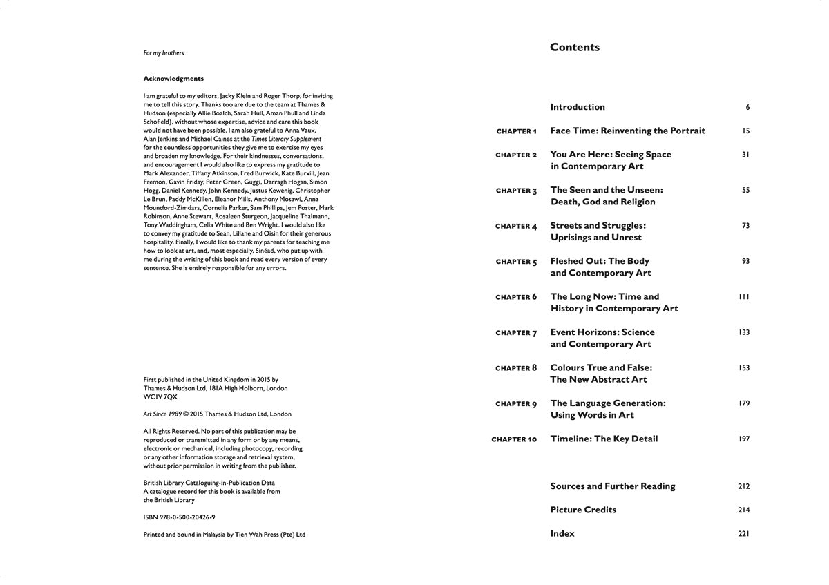 The final chapter, a timeline, traces the evolution of art practice in this period by looking closely at one key artwork from each year.