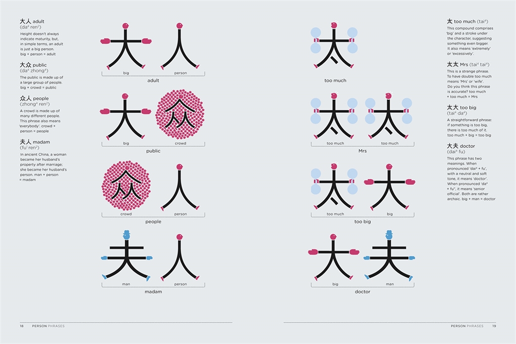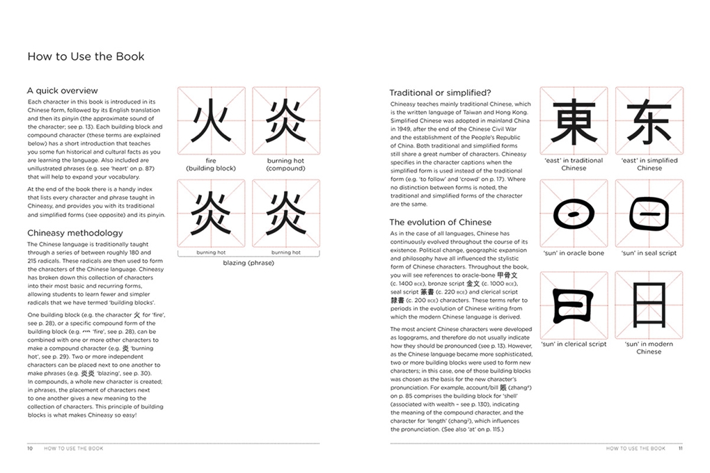 Chineasy™ is a new visual method created to make reading Chinese characters fun and easy. By learning the most commonly occurring characters – the building blocks of the entire language – readers can swiftly grasp basic concepts and words, and gain confidence and insight into Chinese language and culture.
