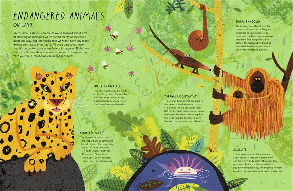 Danny Dodo’s Detective Diary includes tales about Skye the passenger pigeon; Lily, the snail muse of Hawaii whose shimmering shell inspired poetry; and Mayleen the Baiji river dolphin, known to many as the ‘Goddess of the Yangtze.’ But Danny doesn’t just want to celebrate his extinct friends – he’s going to help everyone get to know some of his endangered friends too.