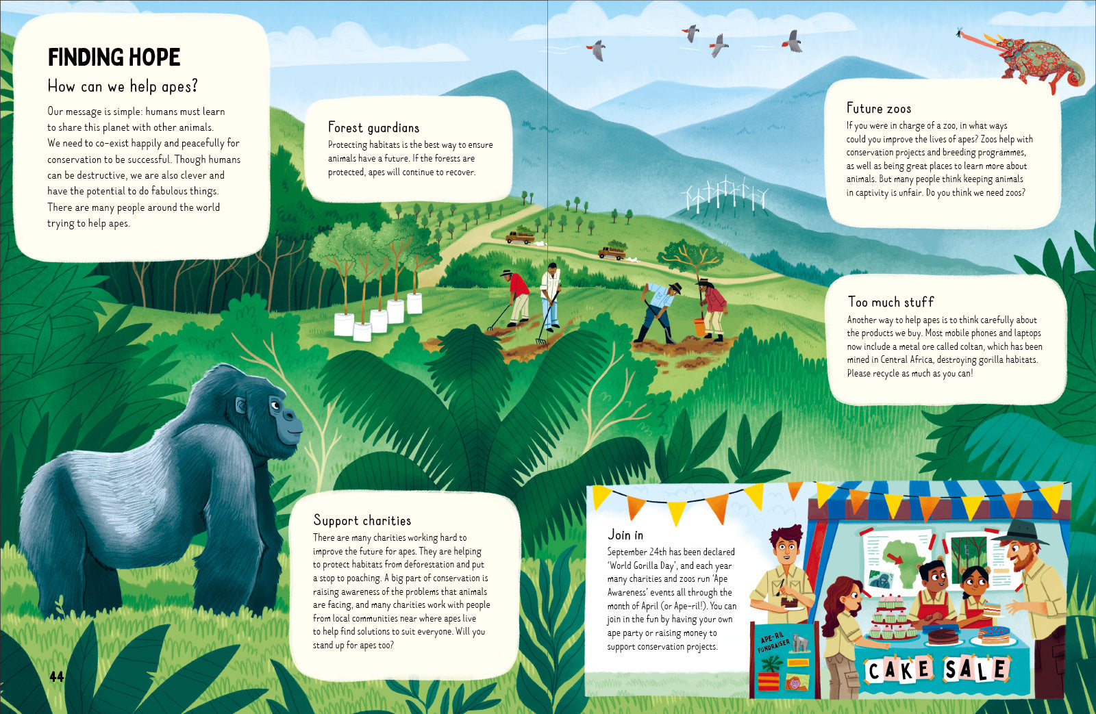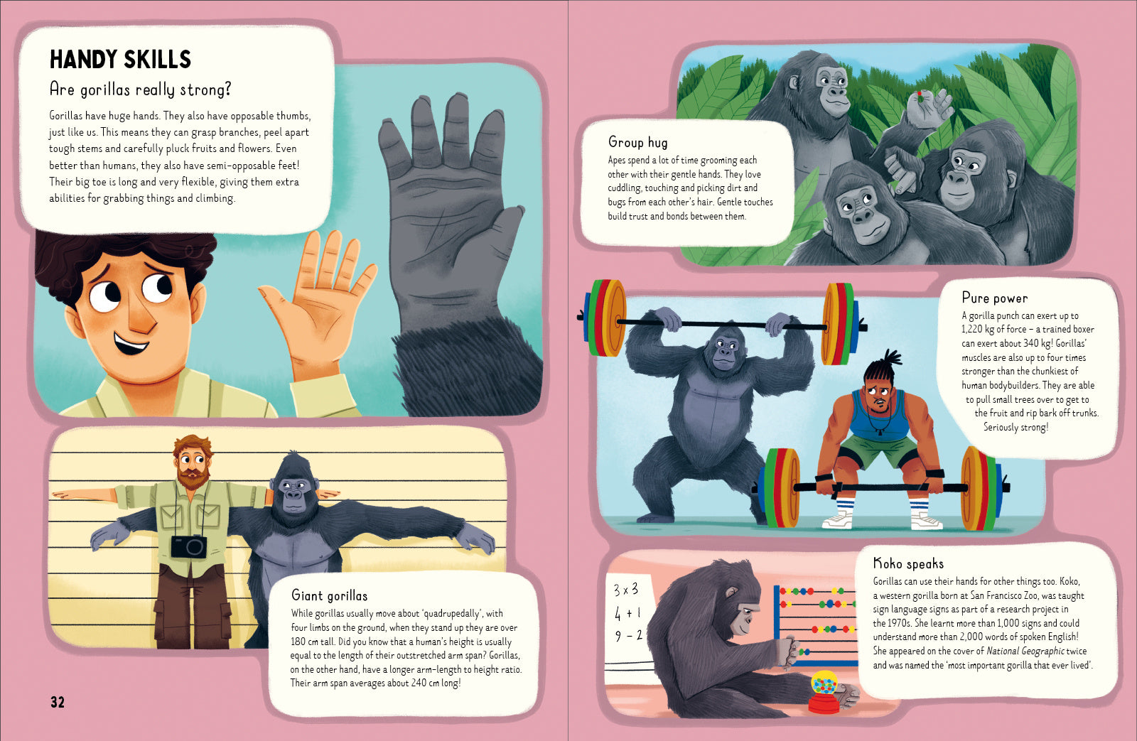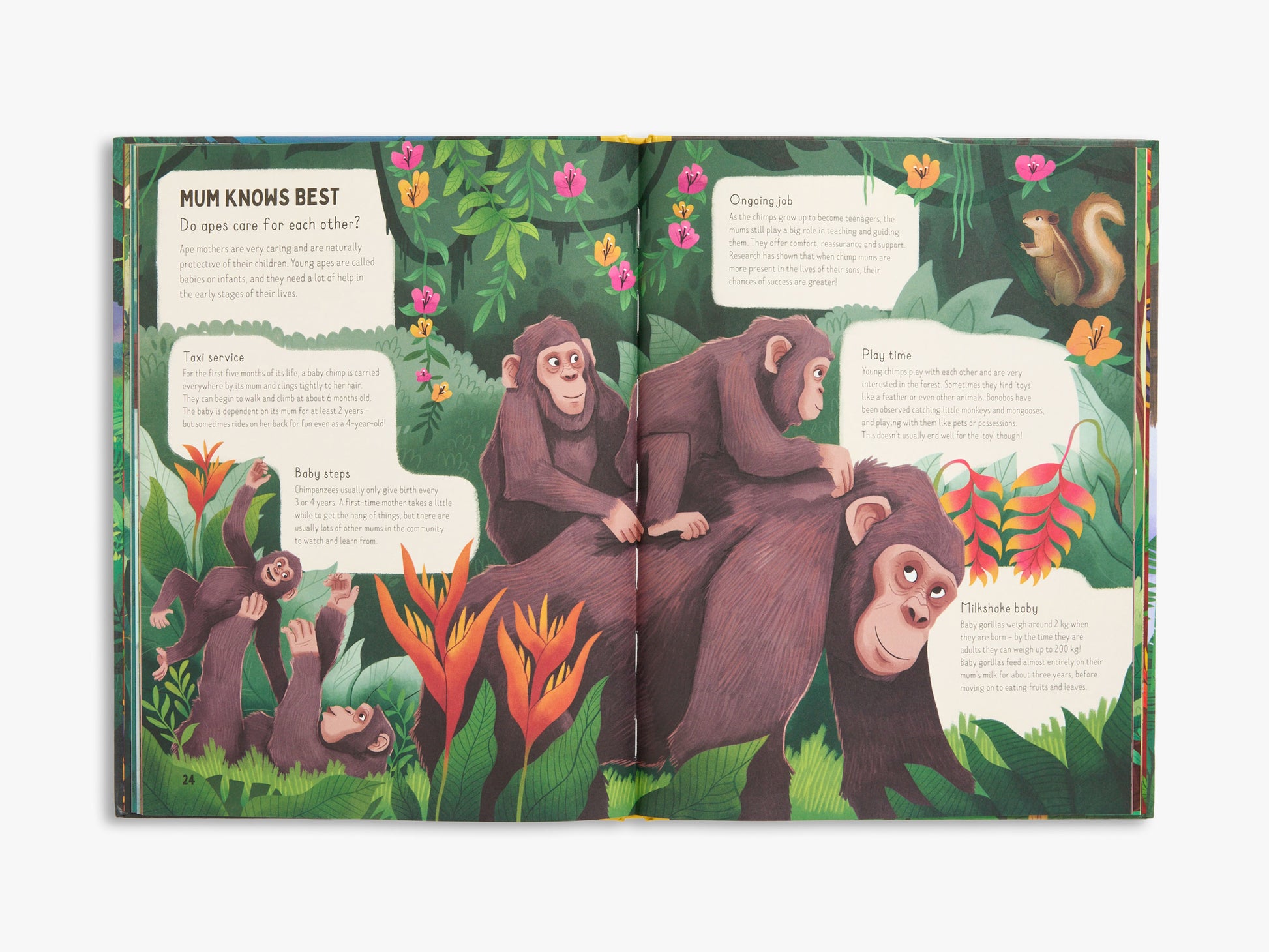 Head high into mountain forests, and through hot steamy jungles, to discover all the different types of ape and learn how we can best help them. From orangutans to chimpanzees, bonobos to YOU... this book is packed with facts, fun, and everything there is to know about our great ape family!