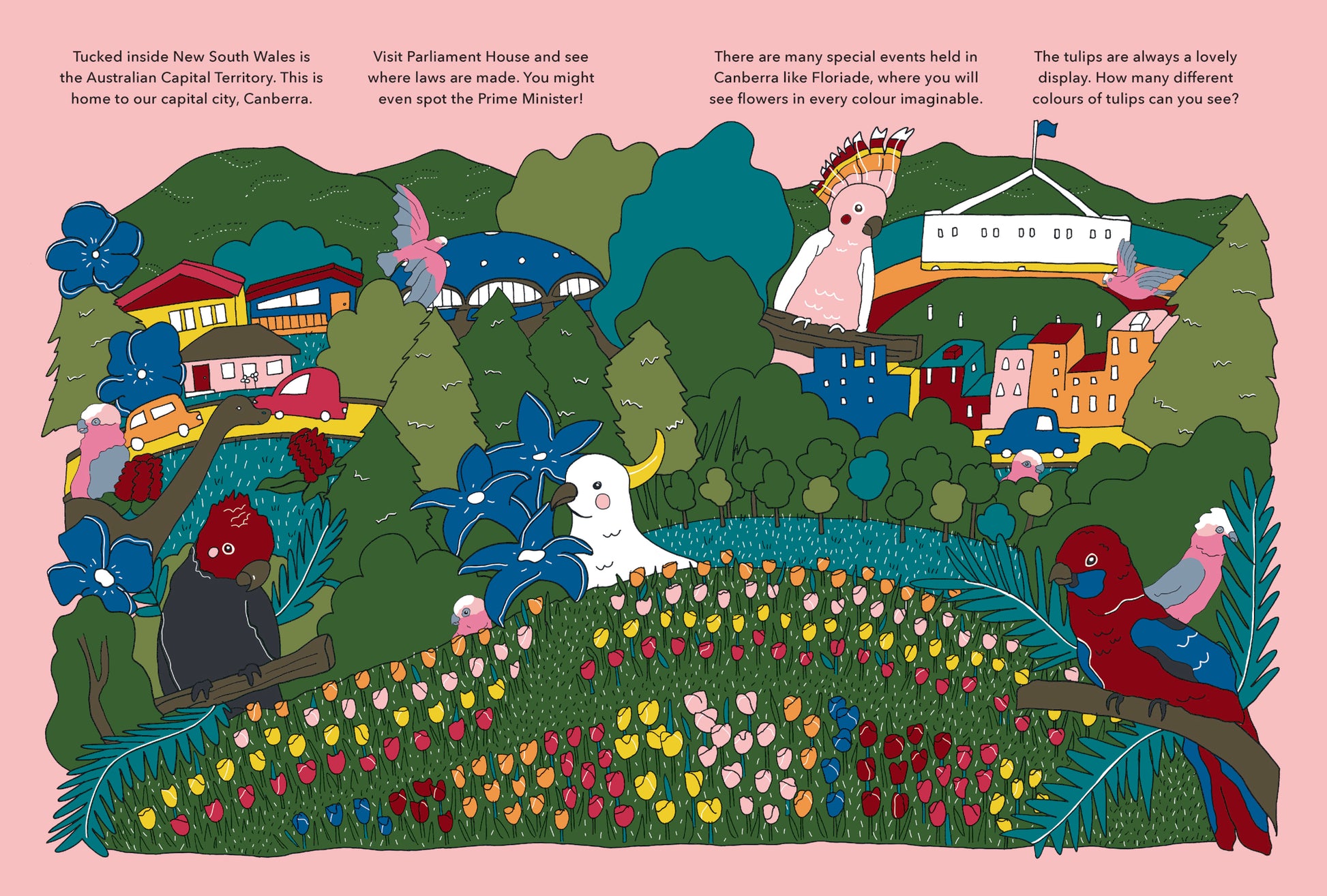 Join a bunch of cheeky galahs in the latest look-and-find adventure in the Hello...! series. This time we're taking a trip around Australia to discover more about the animals, birds and plants that live here. Along the way, you'll meet some very friendly quokkas, take a ferry to Kangaroo Island, marvel at the Big Things and learn about some places that are sacred to the traditional owners of the land. From sunny Queensland to the ski fields of Victoria, there's so much to see and do around Australia.