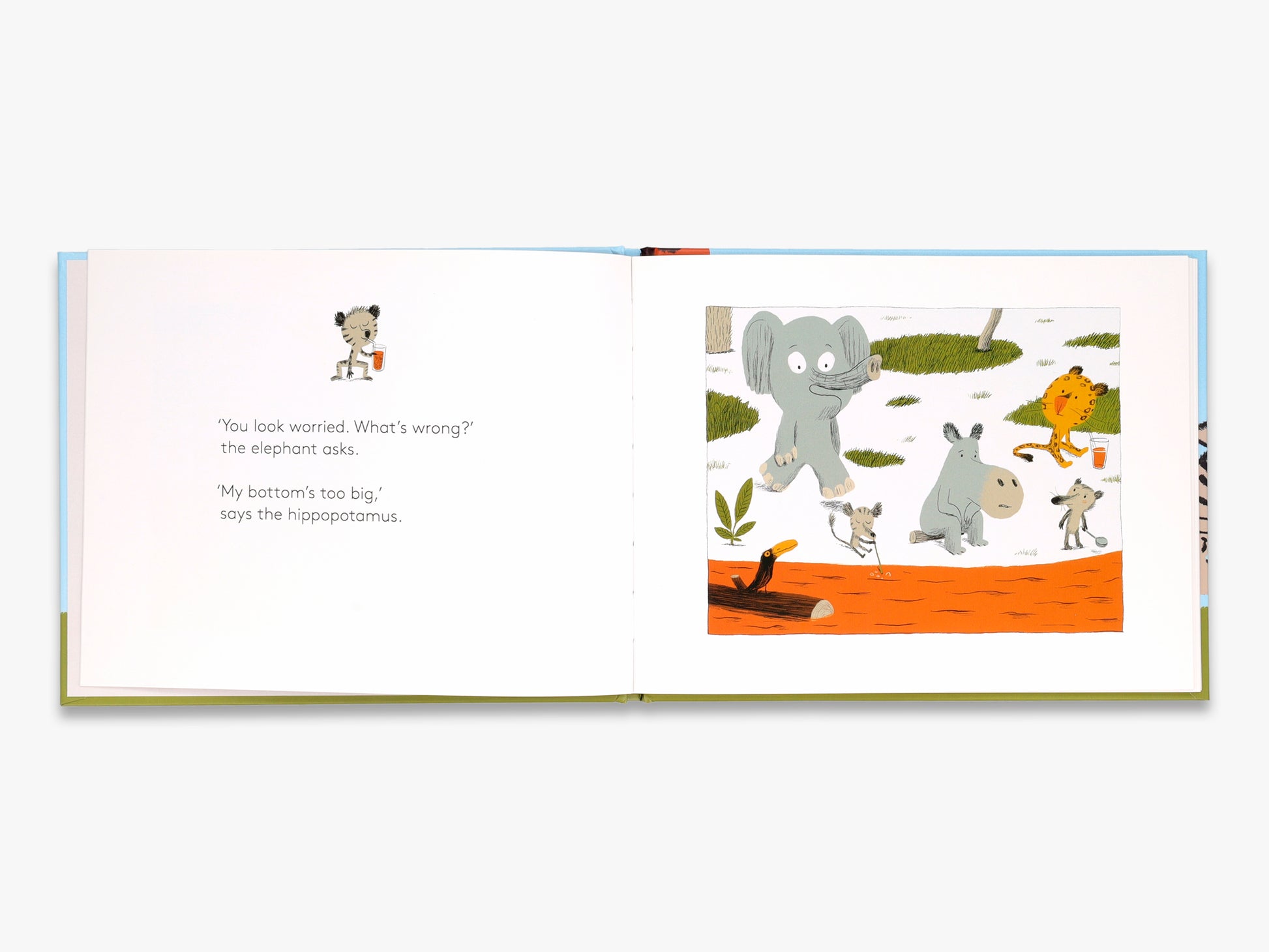 The hippopotamus is feeling worried. Is his bottom too big? All the other animals have an opinion, but nobody can agree and things soon start to get out of hand. Is there a way to sort out the mess?