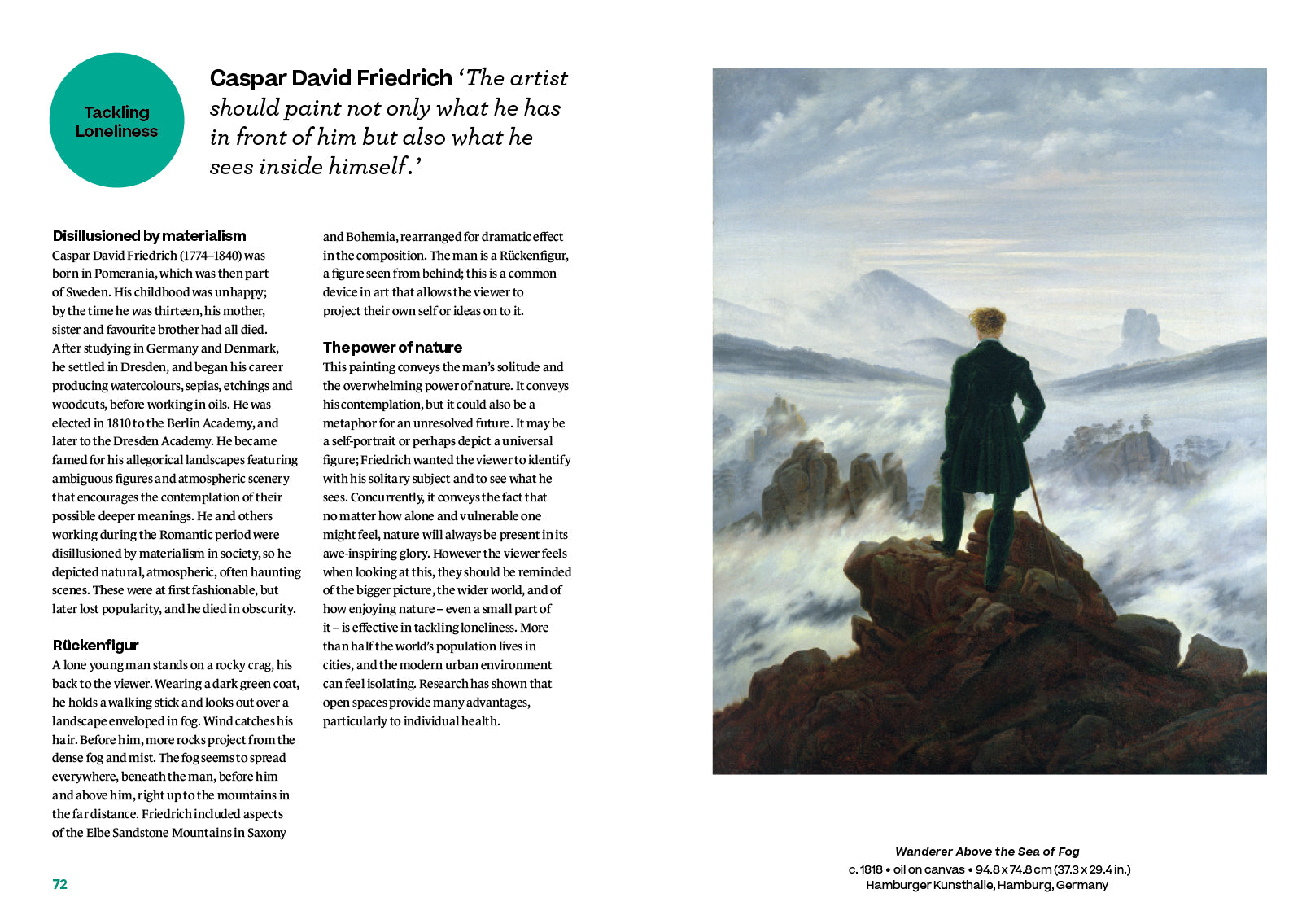 This guide introduces readers to new ways of looking at a wide range of art. Through careful examination and explanation, it investigates how engaging with art and drawing upon its ideas can help everyone feel connected and inspired. From Frida Kahlo confronting her anxieties to Henri Matisse embracing happiness, from Louise Bourgeois conquering fear to Auguste Rodin finding hope, it shows how you too can use art to work through difficult emotions and improve your mental wellbeing. Even art that unsettles can help us to think and feel differently.