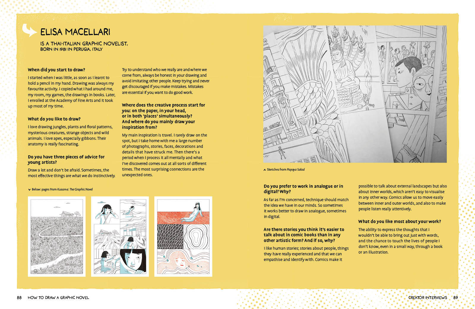 Each lesson is supported by striking illustrations by graphic novel artist Marco Maraggi, and professional artworking tips are delivered in the style of a graphic novel by renowned Italian cartoonist and comics lecturer Otto Gabos. The book also includes biographies of and interviews with cult creators who share insights into their working process as well as work from their sketchbooks.