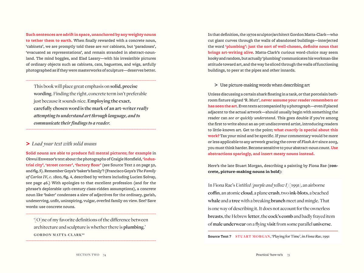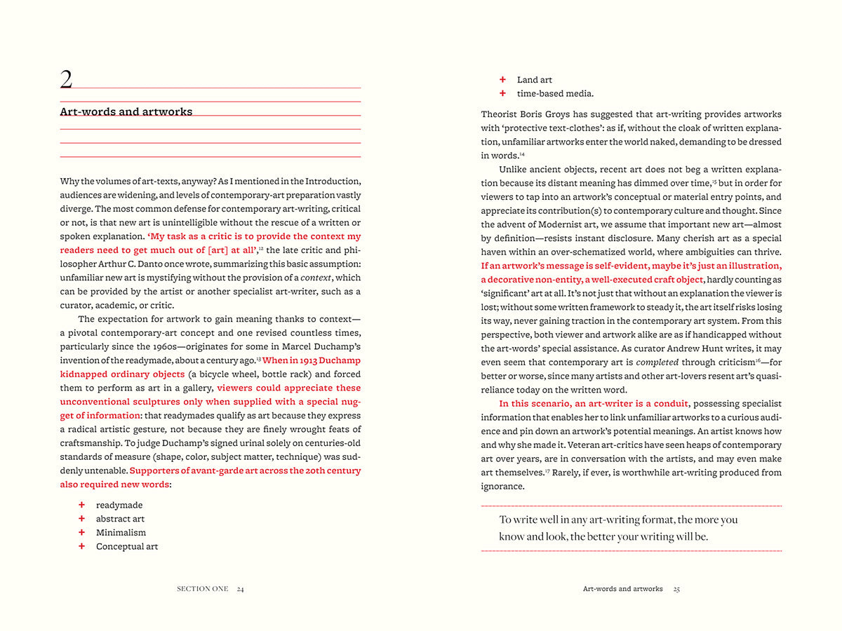 In counselling the reader against common pitfalls - such as jargon and poor structure - Gilda Williams points instead to the power of close looking and research, showing how to deploy language effectively; how to develop new ideas; and how to construct compelling texts. More than 30 illustrations throughout support closely analysed case studies of the best writing in Source Texts by 64 authors, including Claire Bishop, Thomas Crow, T.J. Demos, Okwui Enwezor, Dave Hickey, John Kelsey, Chris Kraus, Rosalind Krauss, Stuart Morgan, Hito Steyerl and Adam Szymczyk.