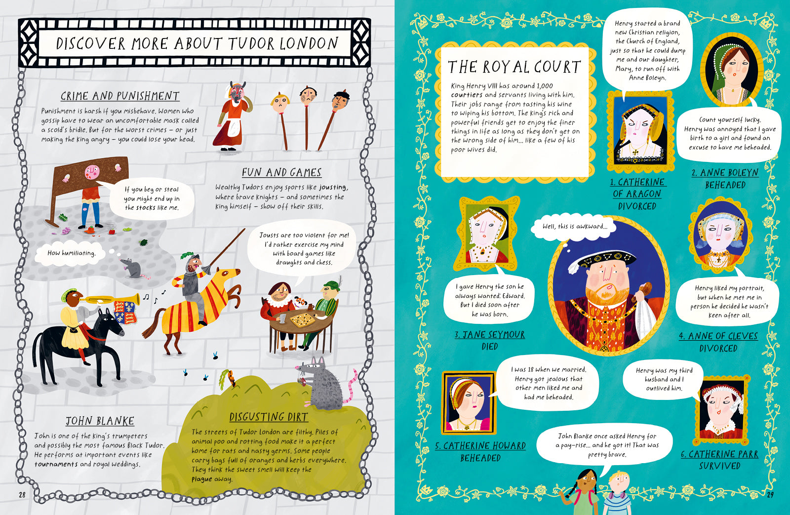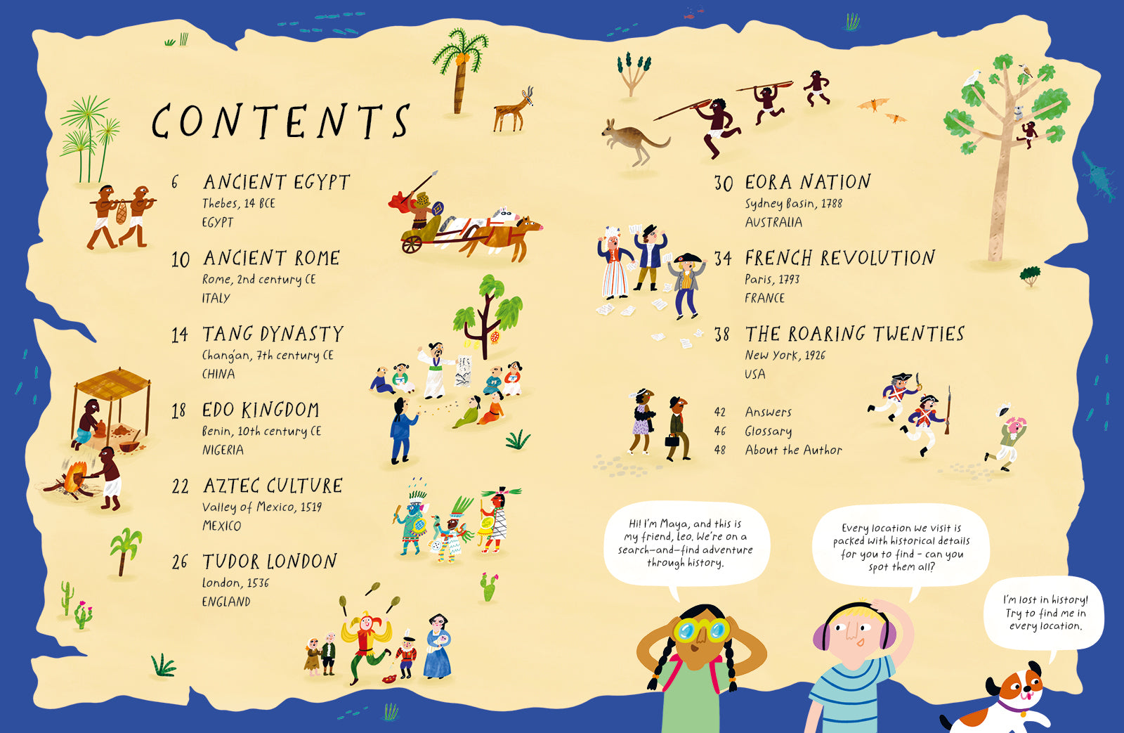 Readers will seek across nine amazing locations, from the palaces of ancient Egypt to the Roman Colosseum, the dirty streets of Tudor London to the chaos of the French Revolution, to discover key people and objects from the time and place, supported by well-researched and playfully told facts giving insight into what the reader has found. This is a tasty sample of world history that will delight young history lovers.