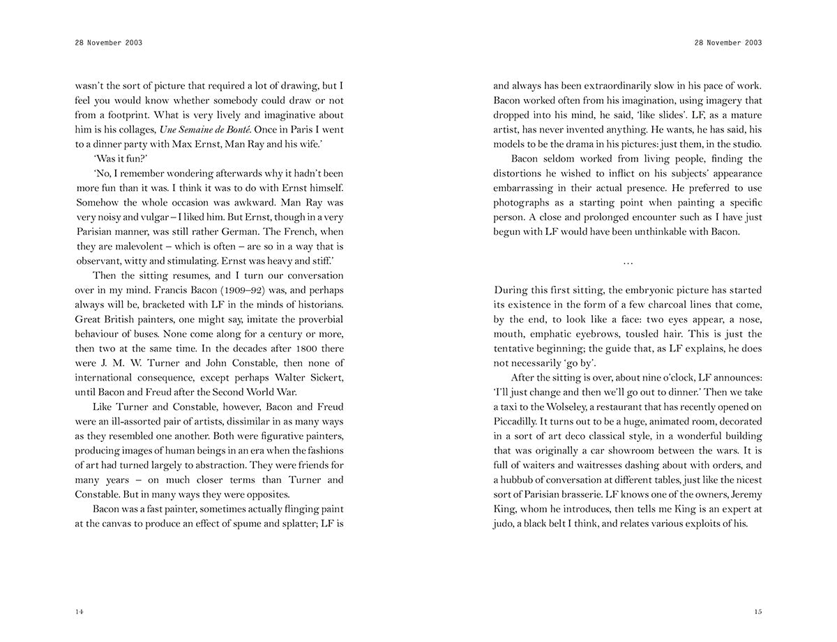 Lucian Freud (1922-2011), widely regarded as the greatest figurative painter of our time, spent seven months painting a portrait of the art critic Martin Gayford. The daily narrative of their encounters takes us into that most private place, the artist's studio, and to the heart of the working methods of this modern master - both technical and subtly psychological. From this emerges an understanding of what a portrait is, but something else is also built up: a portrait, in words, of Freud himself.