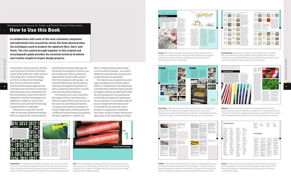 This fundamental new resource explores established, traditional, emerging and innovative production techniques and materials used in textile and fashion design. Organized into four main parts - Fibre and Yarn Technology, Textile Technology, Construction Technology, and Materials - parts one to three explain over 70 major processes in detail, each featuring a technical description, an analysis of the applications, design opportunities and considerations, quality, cost, speed and environmental impact. All of the processes feature detailed step-by-step case studies showing the process 'in manufacture' at a leading international supplier. Part four features essential knowledge on over 60 natural and man-made materials.
