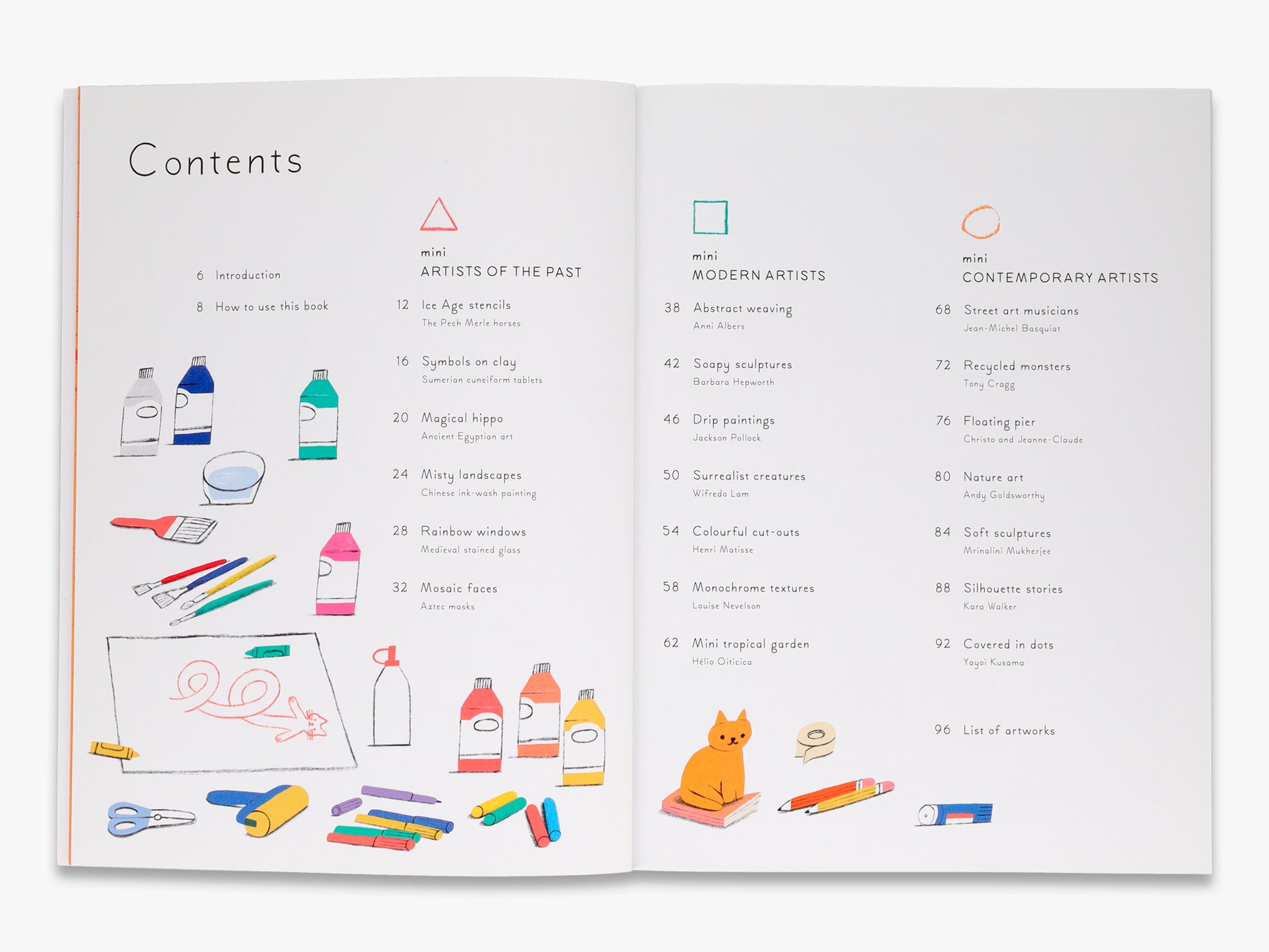 The twenty projects in Mini Artists are designed to engage children with art through making. Mini artists will discover drip painting with Jackson Pollock, carve soap sculptures with Barbara Hepworth, and create their own obliteration room with Yayoi Kusama. They'll also travel through time and explore art from different periods, from cave painting to Medieval stained-glass, and Chinese ink painting to washable graffiti inspired by Jean-Michel Basquiat.