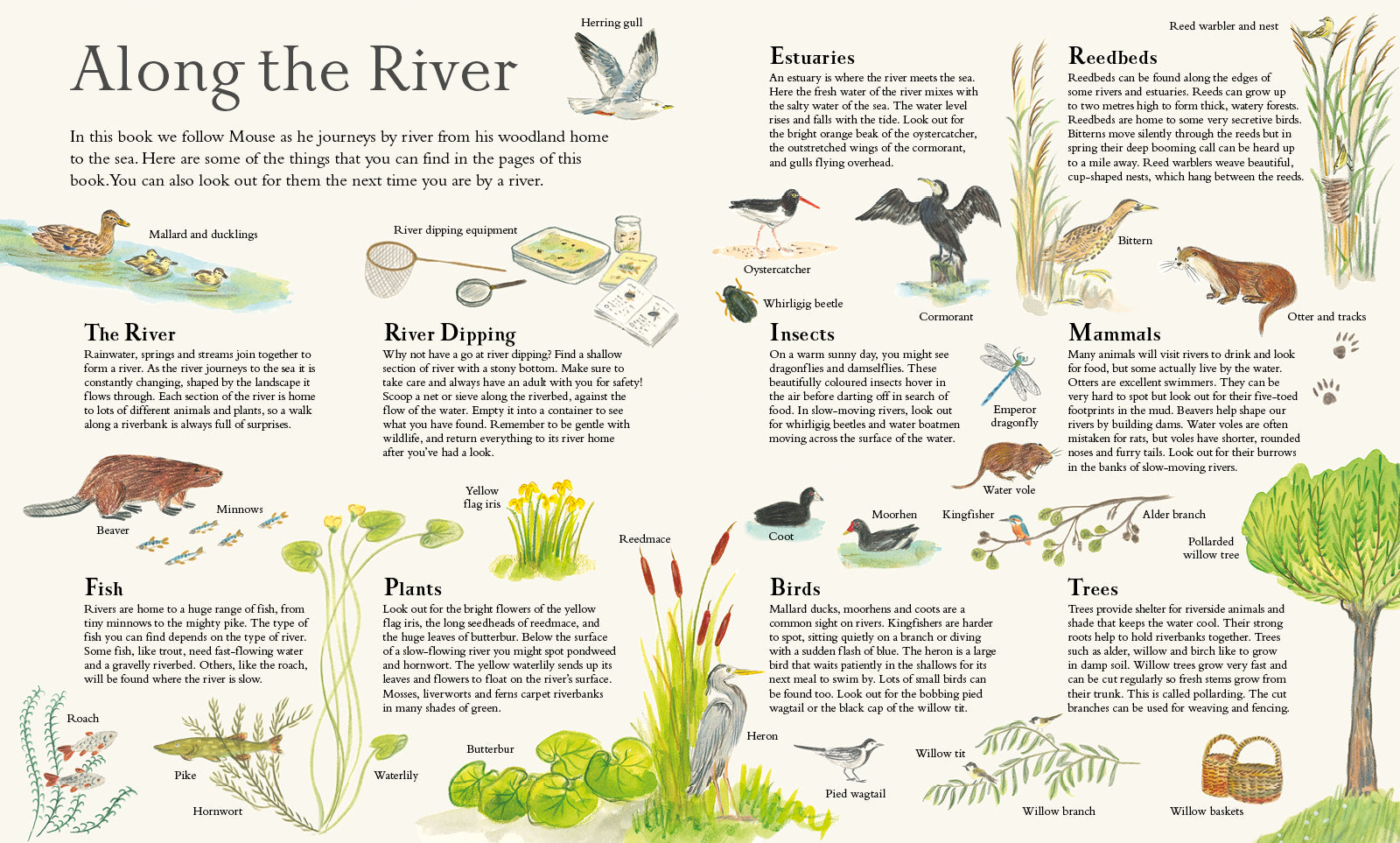 Illustrated by Alice Melvin, who has spent hours drawing directly from nature to make the book, Mouse on the River is sure to win over readers with its charming characters and intensely detailed scenes. A nature spotter's guide is also included at the back of the book.