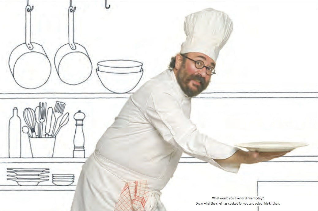 Paint the missing half of a portrait, fill a vase with flowers, help the potatoes escape the pot, give a dog his dinner, draw heads inside hats and helmets, and teach fish to talk!