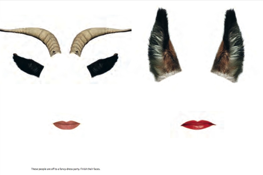 Paint the missing half of a portrait, fill a vase with flowers, help the potatoes escape the pot, give a dog his dinner, draw heads inside hats and helmets, and teach fish to talk!