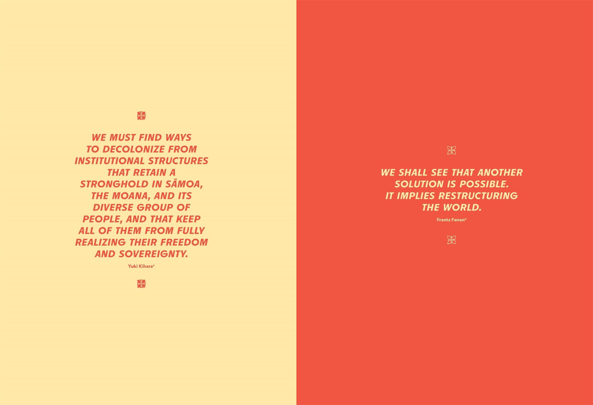 The book contains contributions from Tahiti to Aotearoa. High-profile contributors include New York-based Cuban artist, scholar and activist Coco Fusco, Tahitian author Chantal Spitz, Filipino curator and professor Patrick Flores, and Australian arts leader Natalie King OAM (who edited the book).