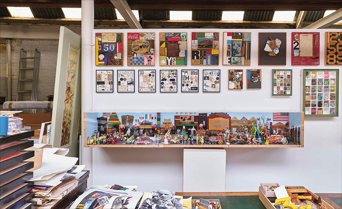 An avid collector, Blake's collages combine junkyard treasures and found objects with images from popular culture. He revisits themes drawn from his childhood - the entertainments of the circus, the glamour of the cinema and the showmanship of the wrestling ring - weaving detailed, often humorous narratives. From his early paintings depicting assembled fragments of popular imagery, to his found-object constructions and his most recent inkjet print collages, Blake has broadened the scope of what collage can be and communicate.