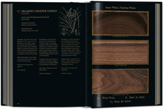 Arranged in alphabetical order, each tree is broken down into three different cross-section cuts of wood (radial, horizontal, and tangential), demonstrating the particular characteristics of the grain and the wealth of colors and textures to be found among the many different wood types.