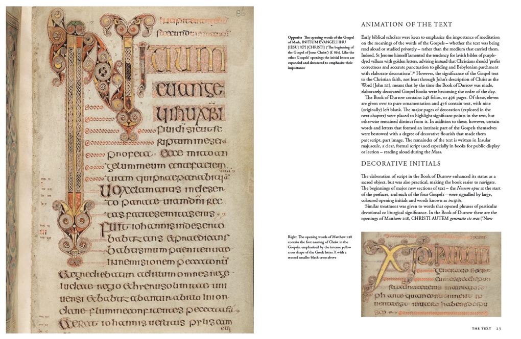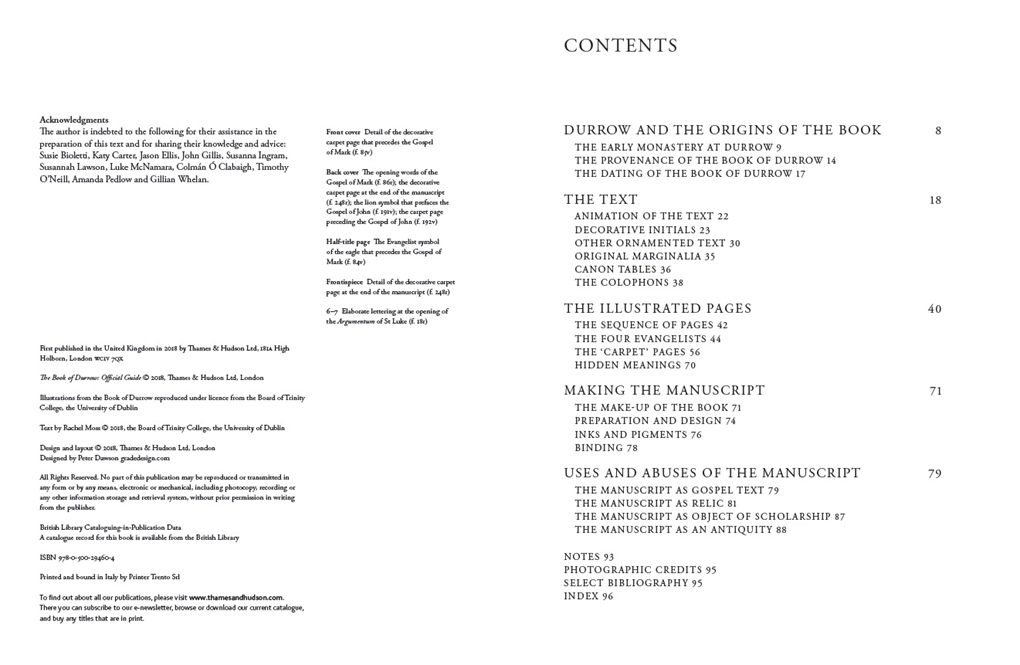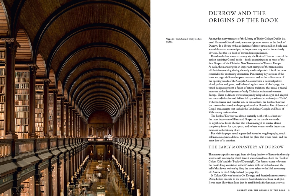 The Book of Durrow is among the earliest surviving decorated manuscripts in north-western Europe, dating to the late seventh century AD. A masterpiece of Celtic art, it is believed to be the oldest fully decorated Insular Gospel that survives, pre-dating the Book of Kells by more than a century. Created in a monastery associated with the Irish saint Colum Cille (St Columba), its text and artwork reflect the formative years of a ‘golden age’ of artistic production in Ireland and Britain. This richly decorated introductory guide explores the manuscript’s distinctive artwork and tells the extraordinary story of its preservation in the Irish monastery at Durrow – first as sacred text then as relic – and its acquisition in the seventeenth century by the Library of Trinity College Dublin.