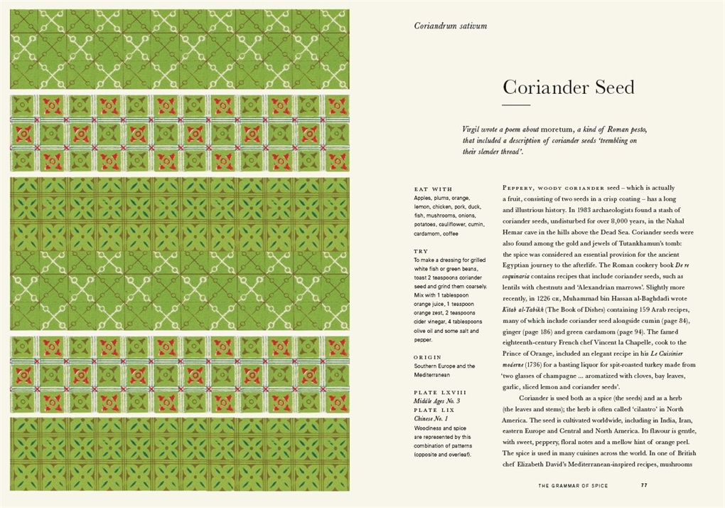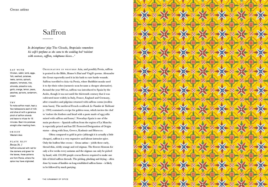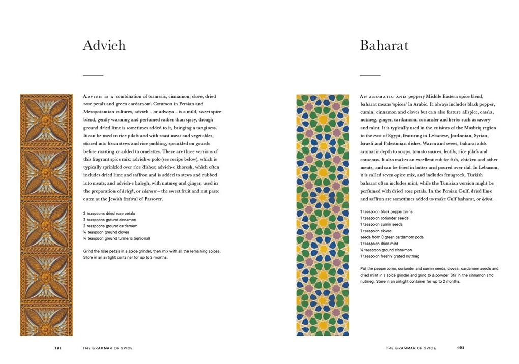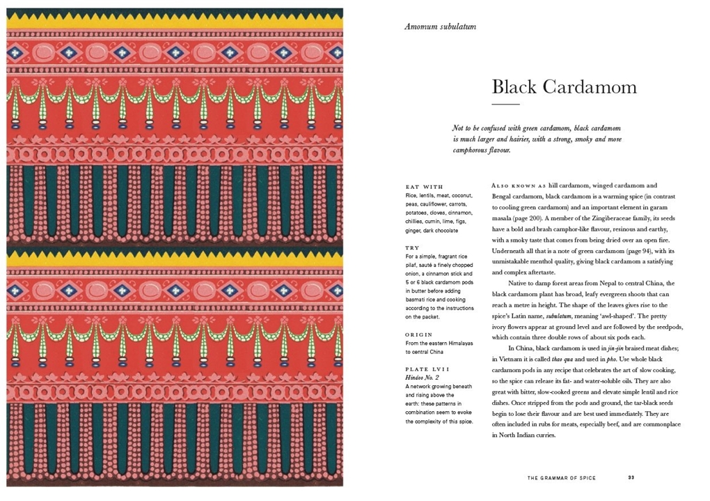 The Grammar of Spice is one of the world’s missing books. It will change the way we understand spices and the role they play in defining not only our food but also our place in the world. The essence of each spice is explored in a brief history peppered with interesting anecdotes and tips, and accompanied by reproductions of surface decoration from Owen Jones’s original book, The Grammar of Ornament. The book is beautiful to look at and hold, packed with well-researched material, and will change the way a generation appreciates the incredible world of flavours and tastes that spices open up to us.