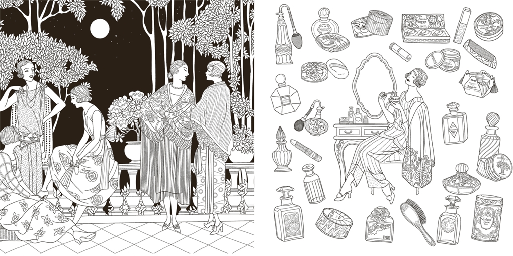 A particularly glamorous colouring book conjuring the carefree spirit of the roaring twenties and the world’s most beautiful city – Paris. Avoiding the colouring-book clichés of nature and basic patterns, Mélanie Boureau instead celebrates the fashions, décor and design of the era: beautiful dresses, sensational hats, art deco patterns and striking bob hairstyles. Colourists will love this very different creative challenge.