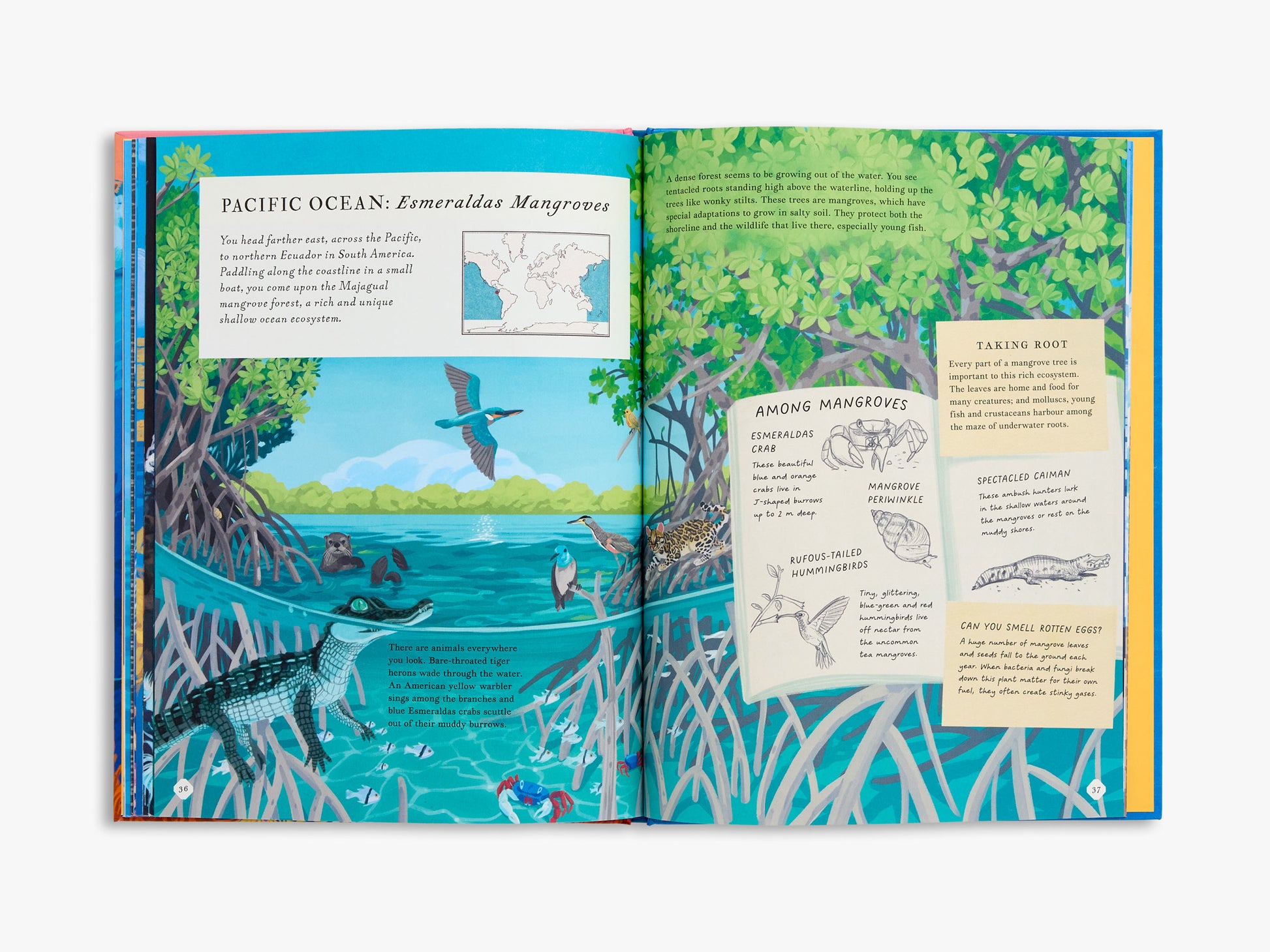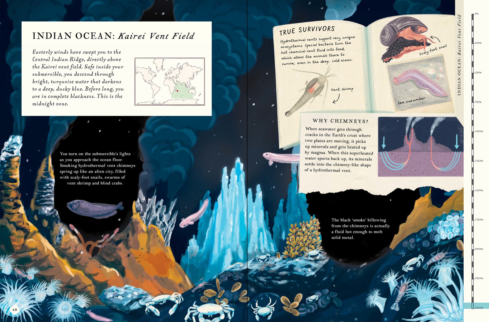 Using clever die-cuts and gatefold pages, the book explains how oceans form, the difference between a sea and an ocean, water zones, tides and currents, and reveals some truly astonishing species, from sea squirts and killer whales to the telescope octopus.