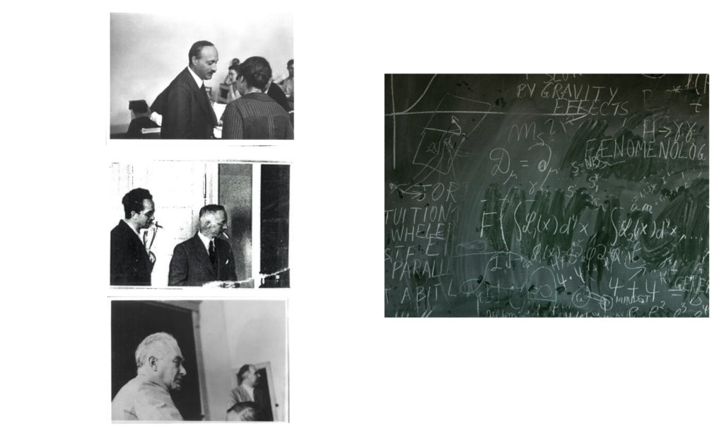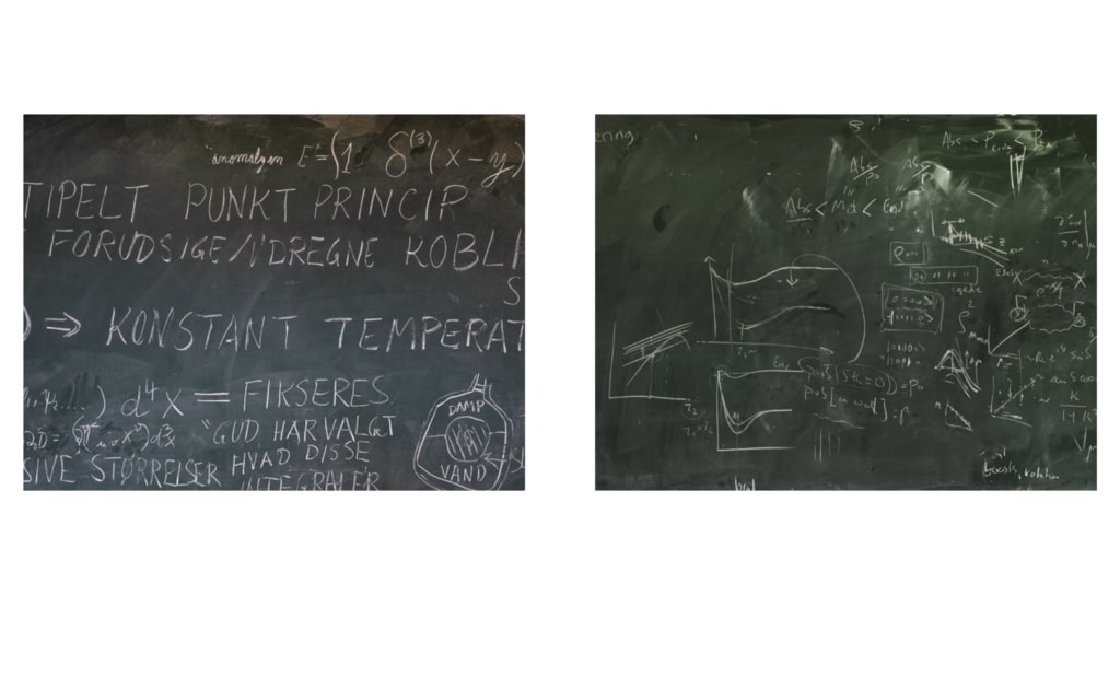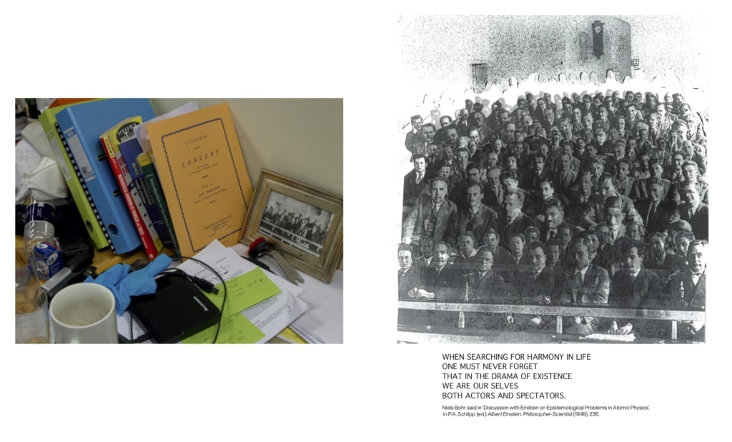 Sculptor Rikke Raben has been part of the Institute's daily life for a decade, and has with her background in portrait sculpture, merged selected historical black & white pictures from the Niels Bohr Archive, collages and quotes, with new colour photos by photographer Anne Prytz Schaldemose, who for five years has depicted life at the institute with her camera.
