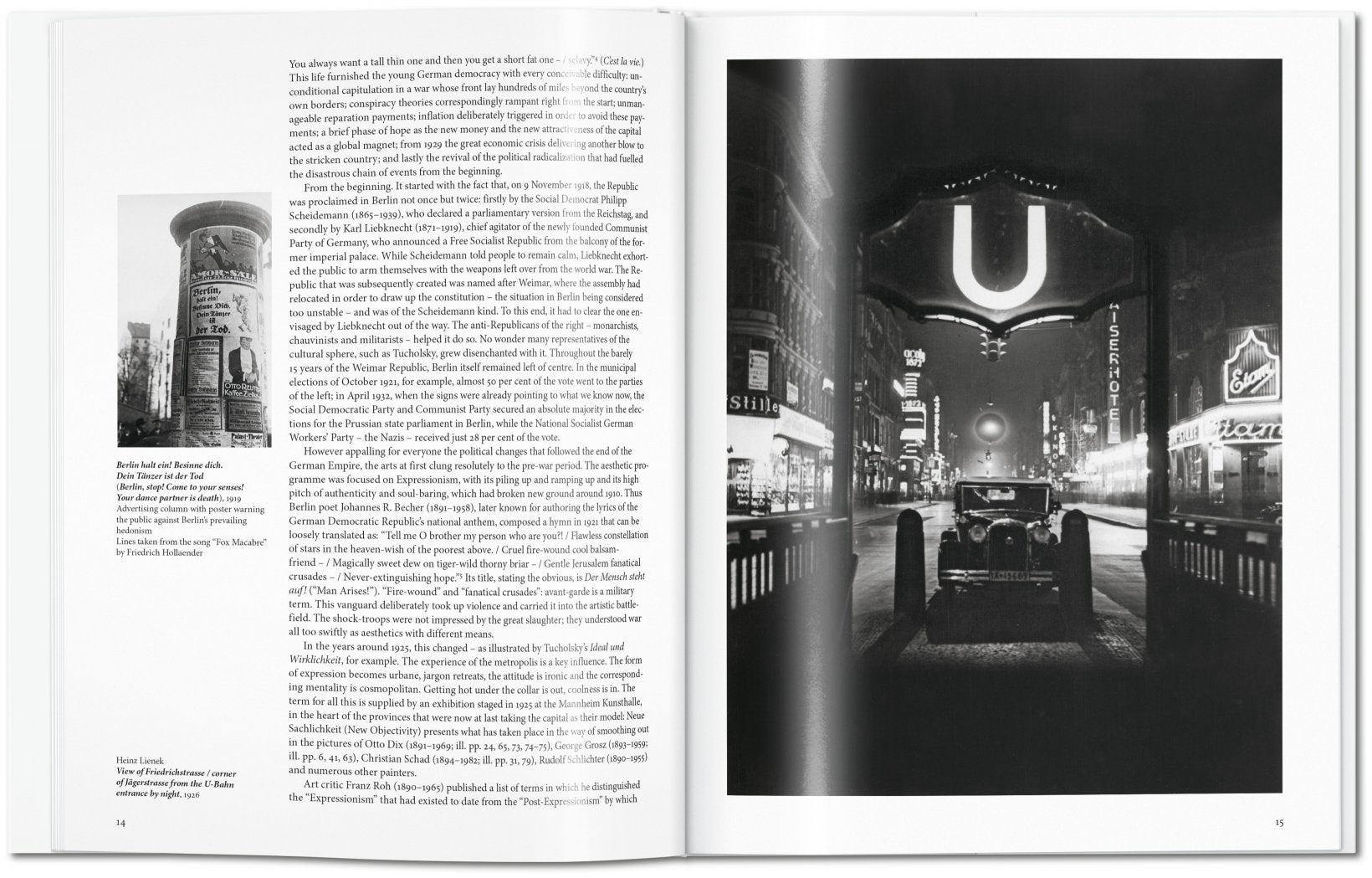 This book immerses readers in the freewheeling spirit of Berlin's Weimar age. Through exemplary works in painting, sculpture, architecture, graphic design, photography, and film, we uncover the innovations, ideas, and precious dreams that characterized this unique cultural window. We take in the jazz bars and dance halls; the crowded kinos and flapper fashion; the advances in technology and transport; the radio towers and rumbling trams and trains; the soaring buildings; the cinematic masterworks; and the newly independent women who smoked cigarettes, wore their hair short, and earned their own money.