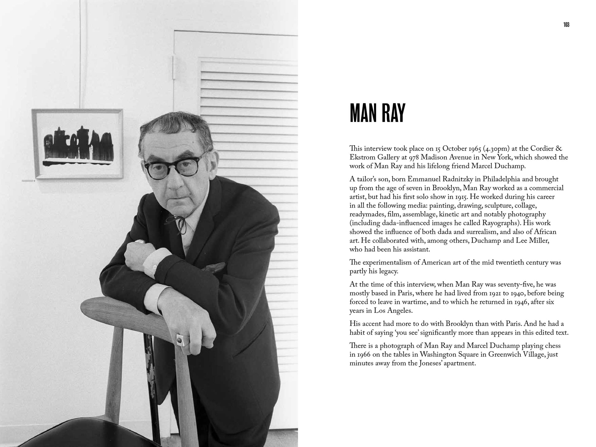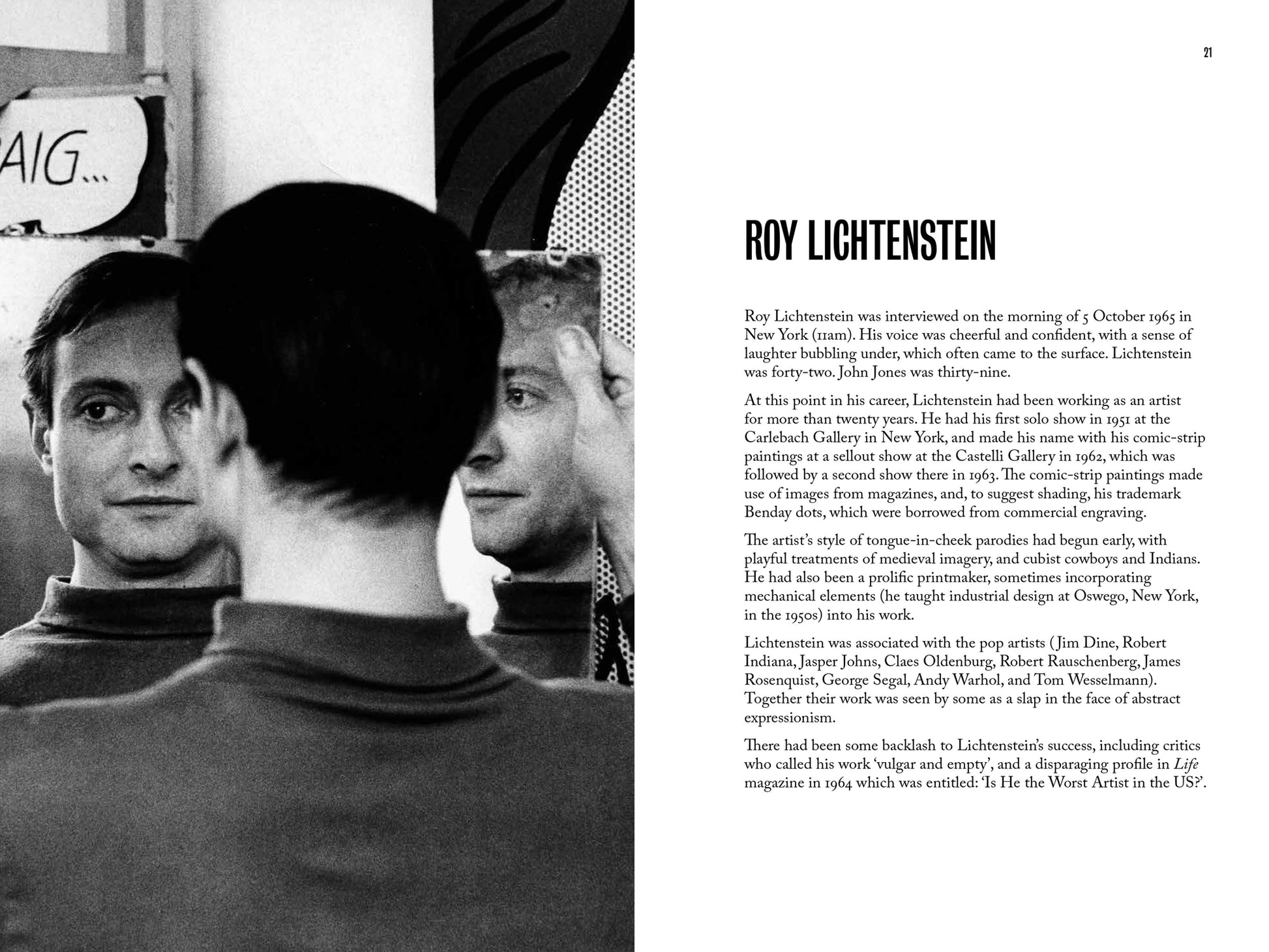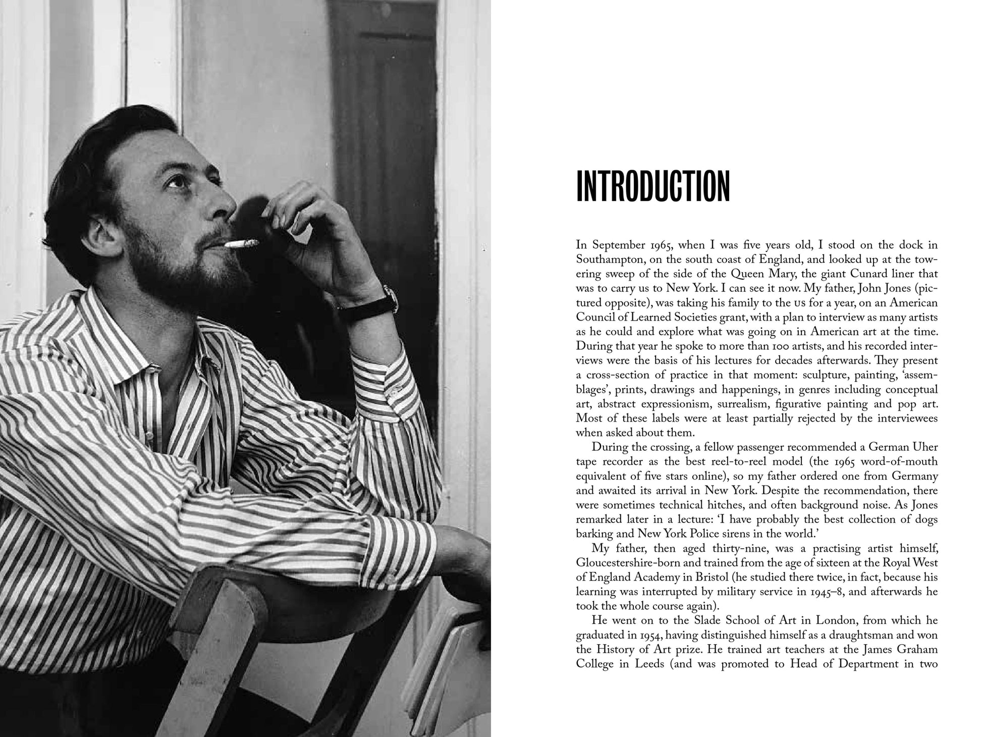 In 1965, British artist John Jones left the UK with his young family to live in the USA. There they settled in Greenwich Village, New York, and spent several months on a road trip west, seeking out artists and interviewing as many as they could. All revealed something unique about their work and practice. Many spoke of the times they were living in - 1960s America, a political and cultural crucible. Some (Claes Oldenburg and Yoko Ono, for instance) became Jones's personal friends.