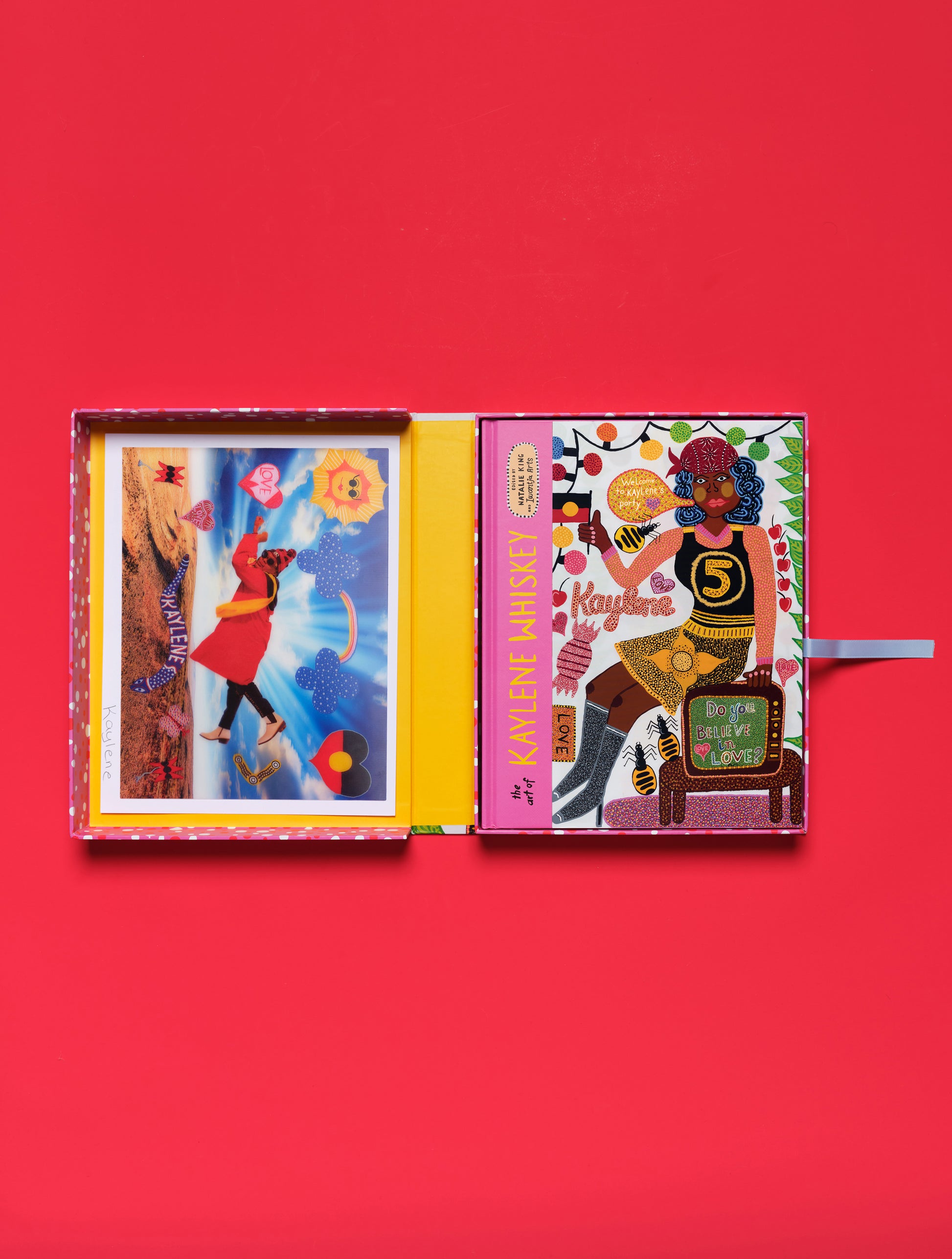 Edited by the renowned curator Natalie King and the team at Iwantja Arts, The Art of Kaylene Whiskey: Do You Believe in Love? is the first major monograph on the artist. Colourfully designed throughout and featuring a dynamic lenticular cover, the volume also includes contributions from notable creatives Taika Waititi, Jazz Money, Zoé Whitley, Clothilde Bullen and April Phillips.