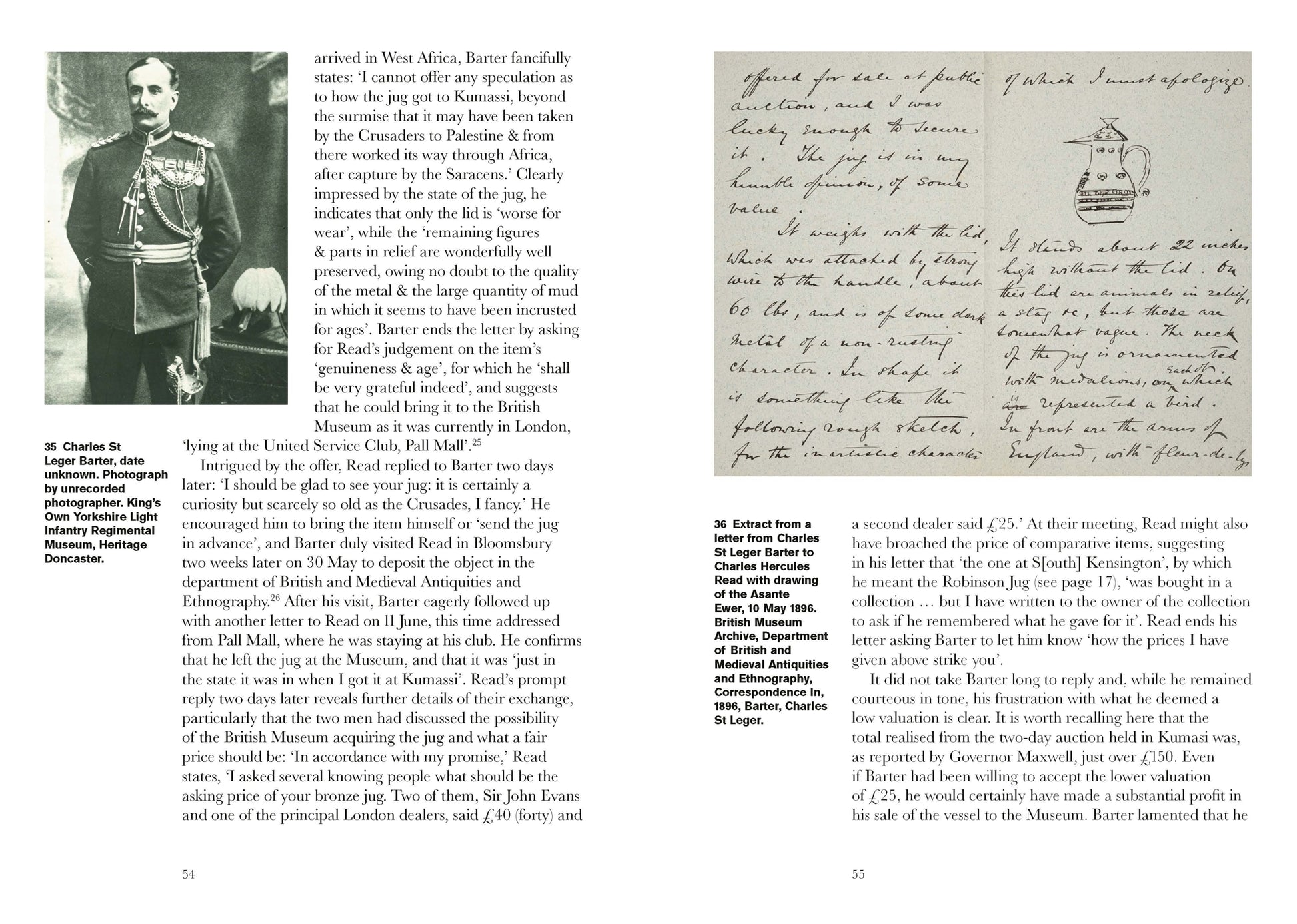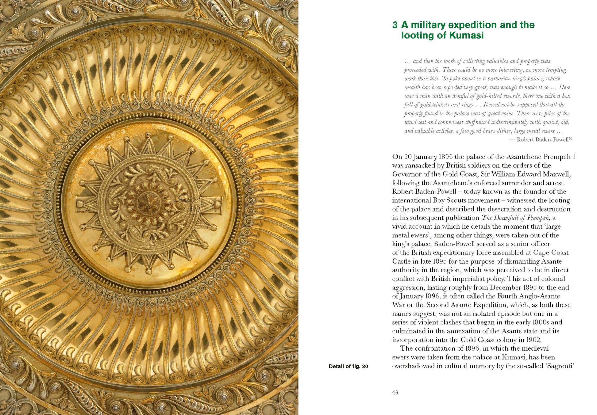 The fourteenth-century metal jug today popularly known as the Asante Ewer has a remarkable story. It was made in medieval England but transported to West Africa, possibly at some point between the fifteenth and seventeenth centuries. By the nineteenth century it was located in a courtyard associated with the royal palace of the Asantehene, the king of the Asante people in Kumasi, present-day Ghana. During widespread looting by British forces in the aftermath of the so-called Fourth Anglo-Asante War of 1896, the ewer was removed from the royal building and subsequently purchased by the British Museum.