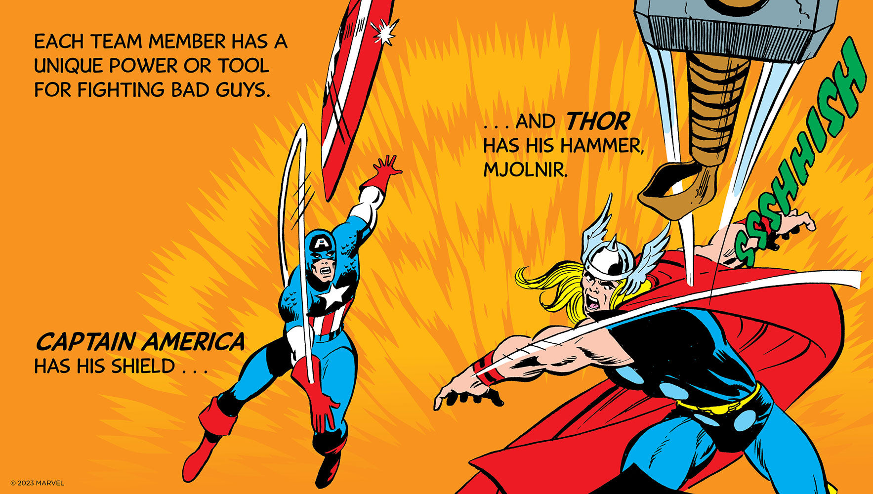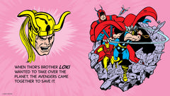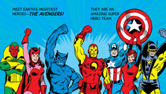 Jump into action with the Avengers, Earth's mightiest heroes! Thor, Iron Man, Captain America, the Scarlett Witch, and their super friends are a mighty team. Learn all about their superpowers, backstories, and enemies in this bright and bold board book with art from the classic comics. The first-ever team to be featured in the Mighty Marvel First Book series, it features a larger trim size to help every Avenger pop off the page! Vivid colors and three special gatefolds make for a fun-filled read perfect for the youngest kids and longtime Marvel fans alike.