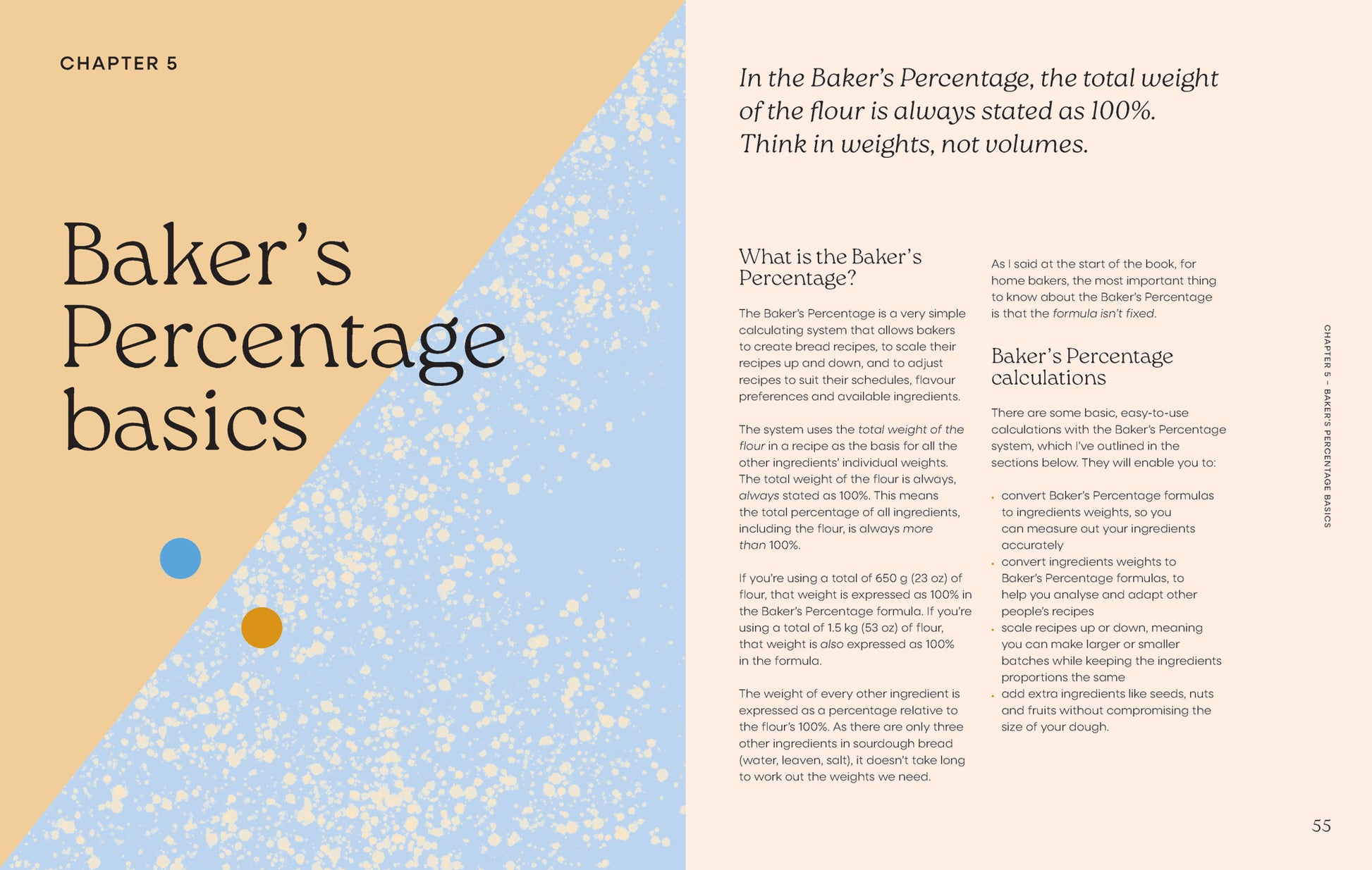The Baker's Percentage is a formula developed by bread bakers to allow them to create any bread. From a pure white sourdough to a hundred per cent whole wheat loaf. With it, bakers can scale up or down, from one loaf to many and can choose to speed up or slow down fermentation according to their daily commitments. It is completely liberating, yet most home bakers have never heard of it.