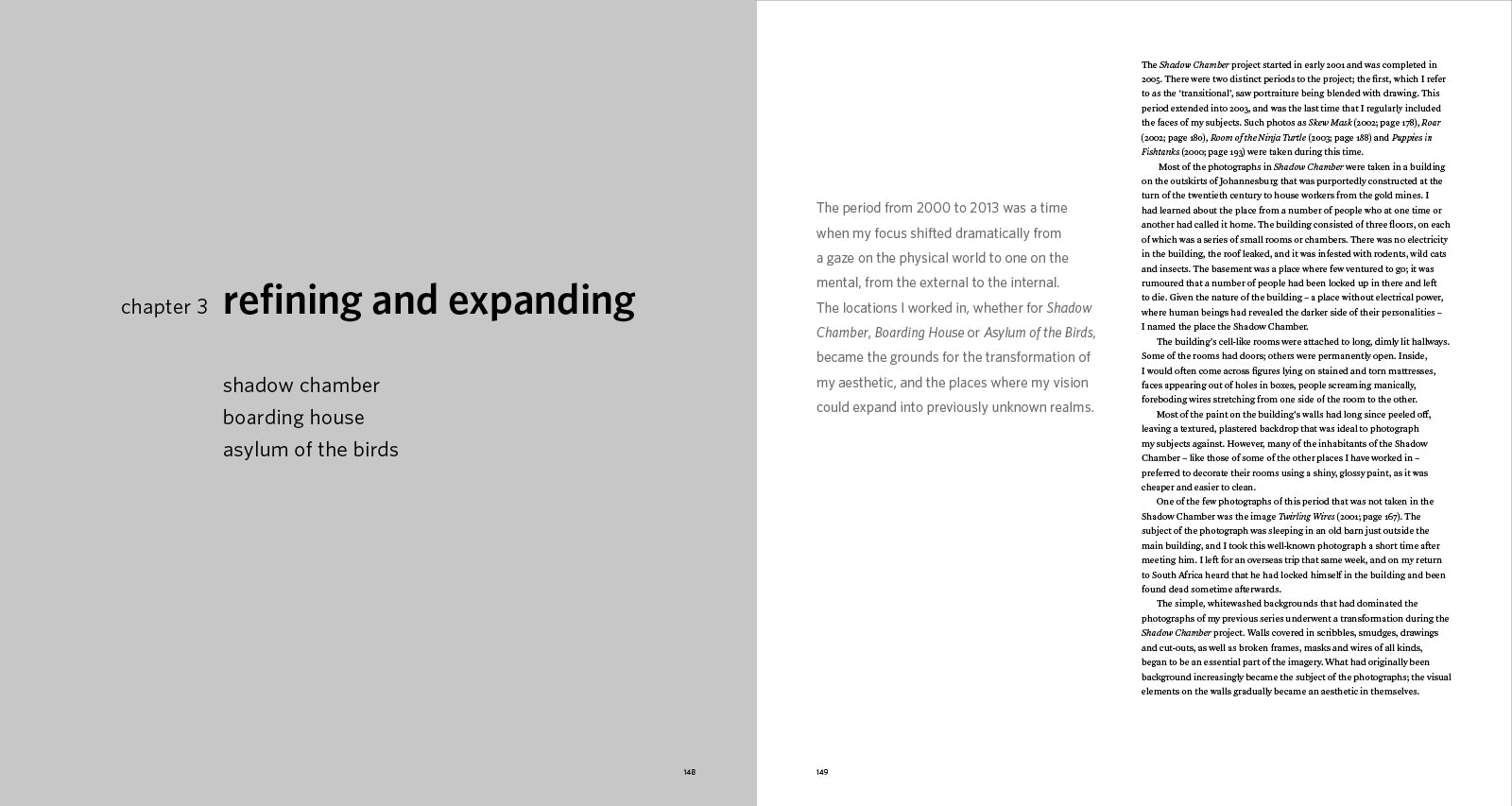 Separated into four parts, Ballenesque takes readers on a visual, chronological journey through Roger Ballen's entire oeuvre, including both iconic images and previously unpublished photographs. Part I explores his formative artistic influences and his later rediscovery of boyhood through photography, culminating in his first published monograph, Boyhood, in 1979. Part II then charts the period between 1980 and 2000, during which time his deeper search for the elemental self found its way into the 'Dorps', or small towns, of South Africa and concluding with the release of his seminal monograph Outland. Part III covers the years 2000-2013, when Ballen achieved global recogition with Shadow Chamber and Boarding House and his work began to veer away from portraiture altogether. Finally, in Part IV, Ballen reflects upon his career in its entirety.