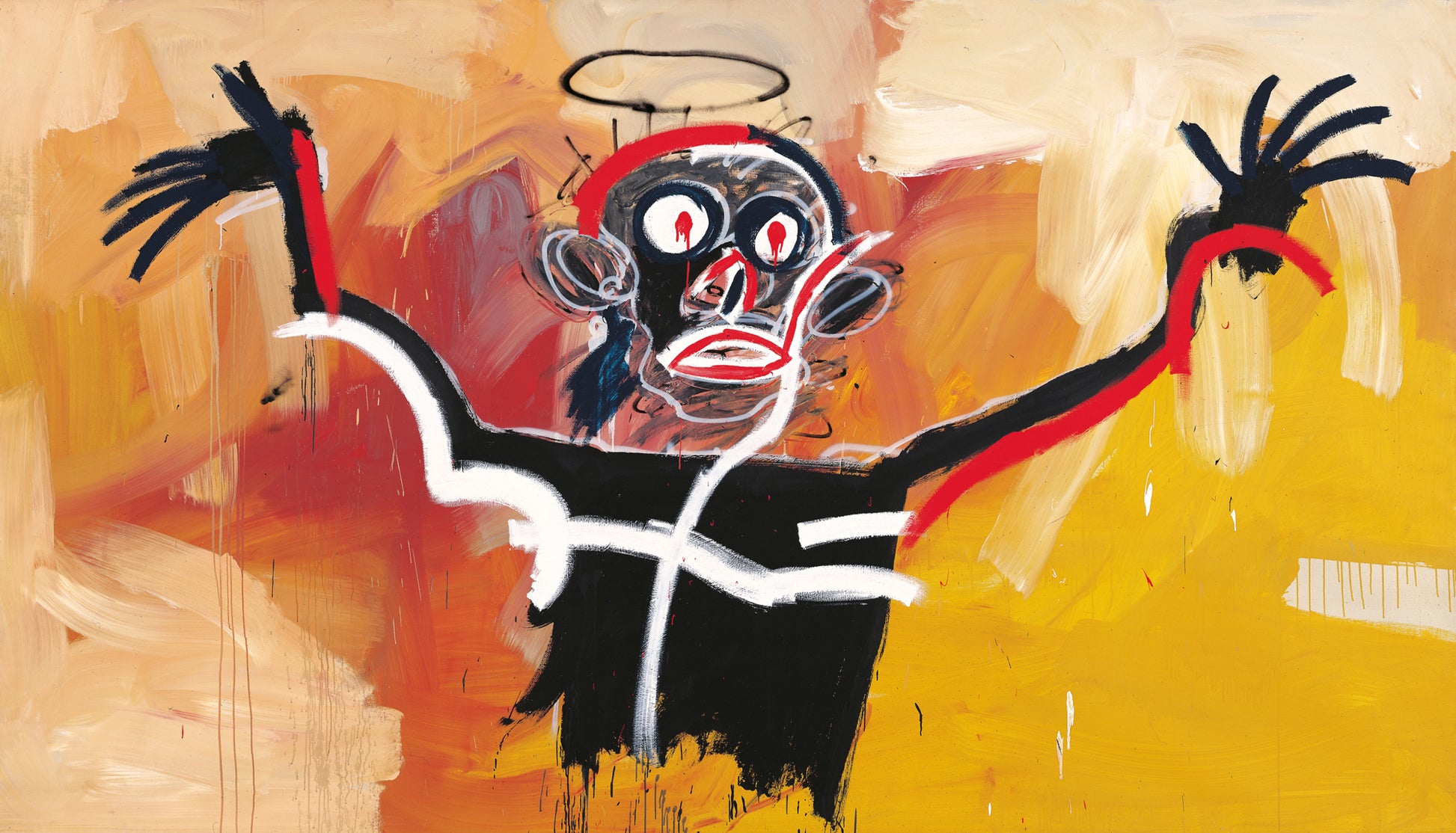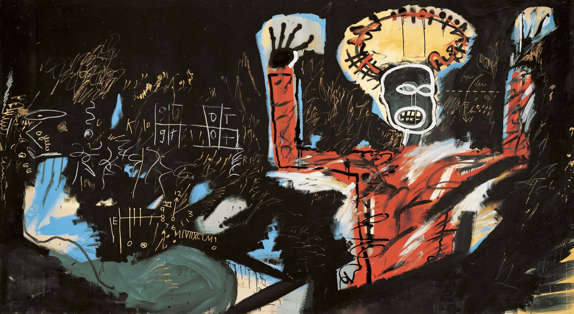 JEAN-MICHEL BASQUIAT (1960-1988, New York) is one of the most important artists of the 20th century. Emerging from the underground post-punk scene in Lower Manhattan, he attracted the attention of the art world in 1981 with the legendary group exhibition New York/New Wave. In nine prolific years, he created an oeuvre that formulated a new visual language of raw gestural painting fused with dense writing, and repeatedly reflected the oppression, exclusion and exploitation of Black people.