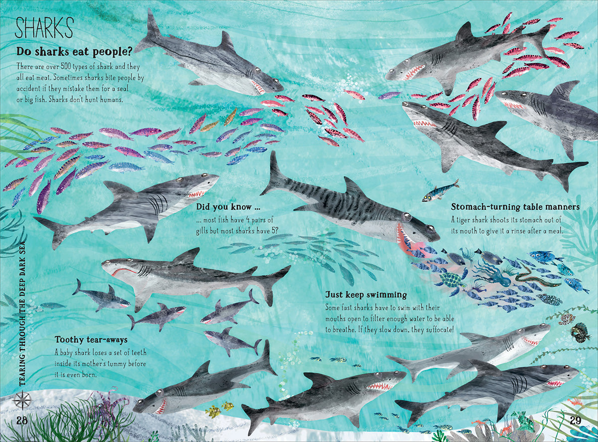 Yuval Zommer's beautiful new book provides the answers to these and many more fishy questions. His wonderfully quirky illustrations show off all kinds of slippery, shimmery and surprising sea creatures, including sea turtles, whales, sharks, rays and seahorses. Chatty, funny and full of amazing facts, it will be devoured by children eager to find out about the most exciting creatures from the deep blue.