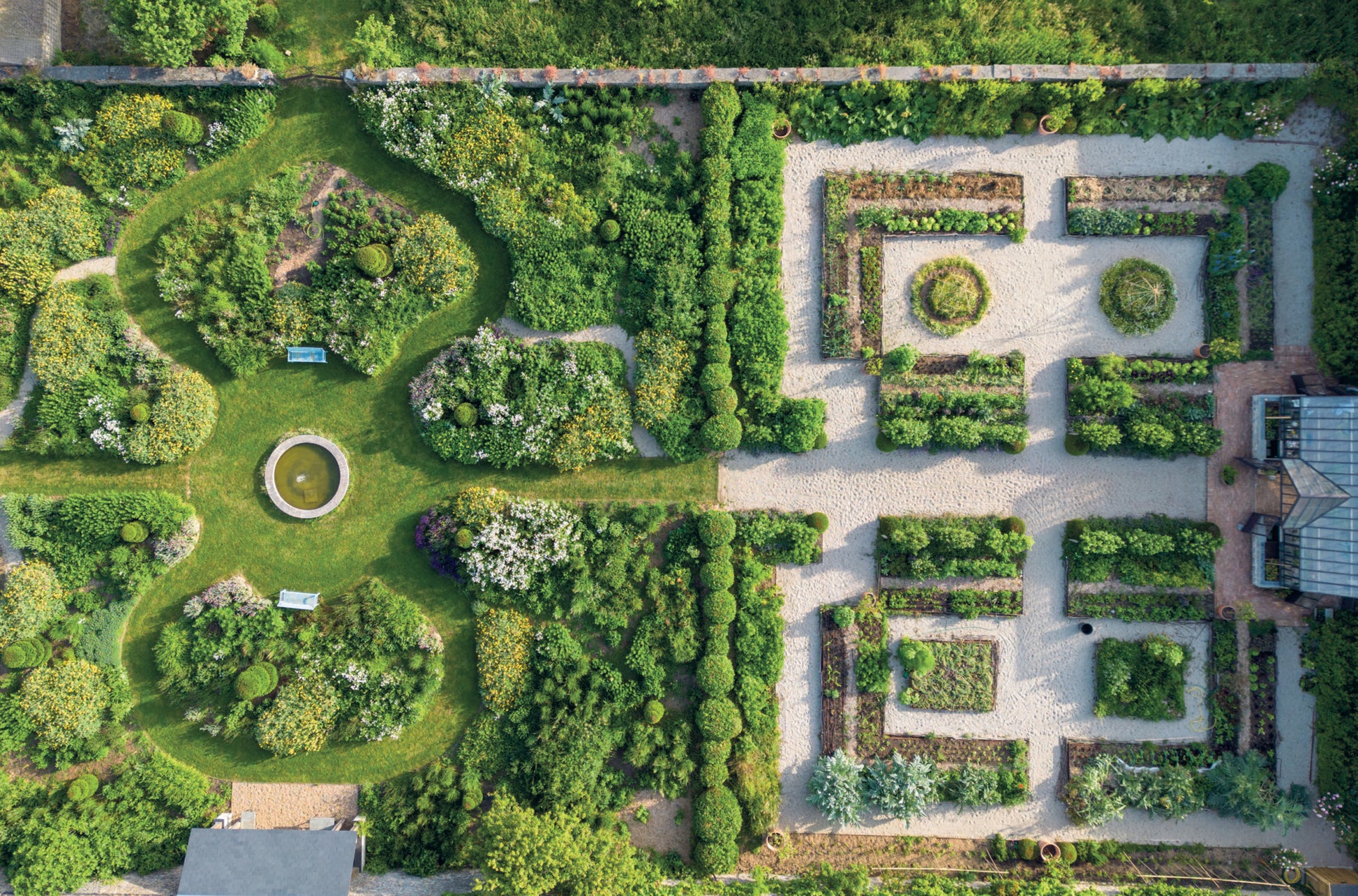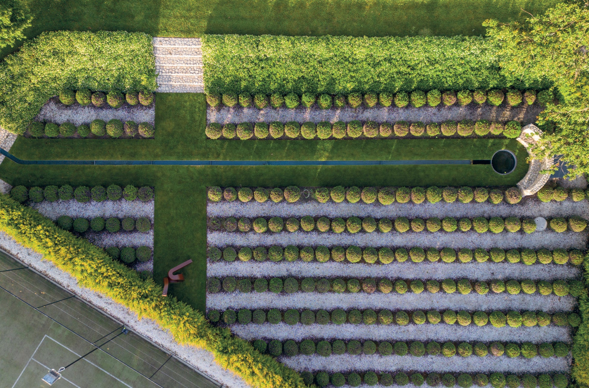 They emerge from the countryside, with borrowed landscapes and dramatic views as key elements. Within each design, Paul creates spaces that bring a different experience of the garden. Vast lawns are bordered by wild grass terraces or dramatic herbaceous borders that flower all year round. An allée of trees directs the eye to mountains in the distance. Outdoor dining areas create intimate vantage points within the broader scale. Jasmine-covered walls diffuse exquisite scent on summer nights.