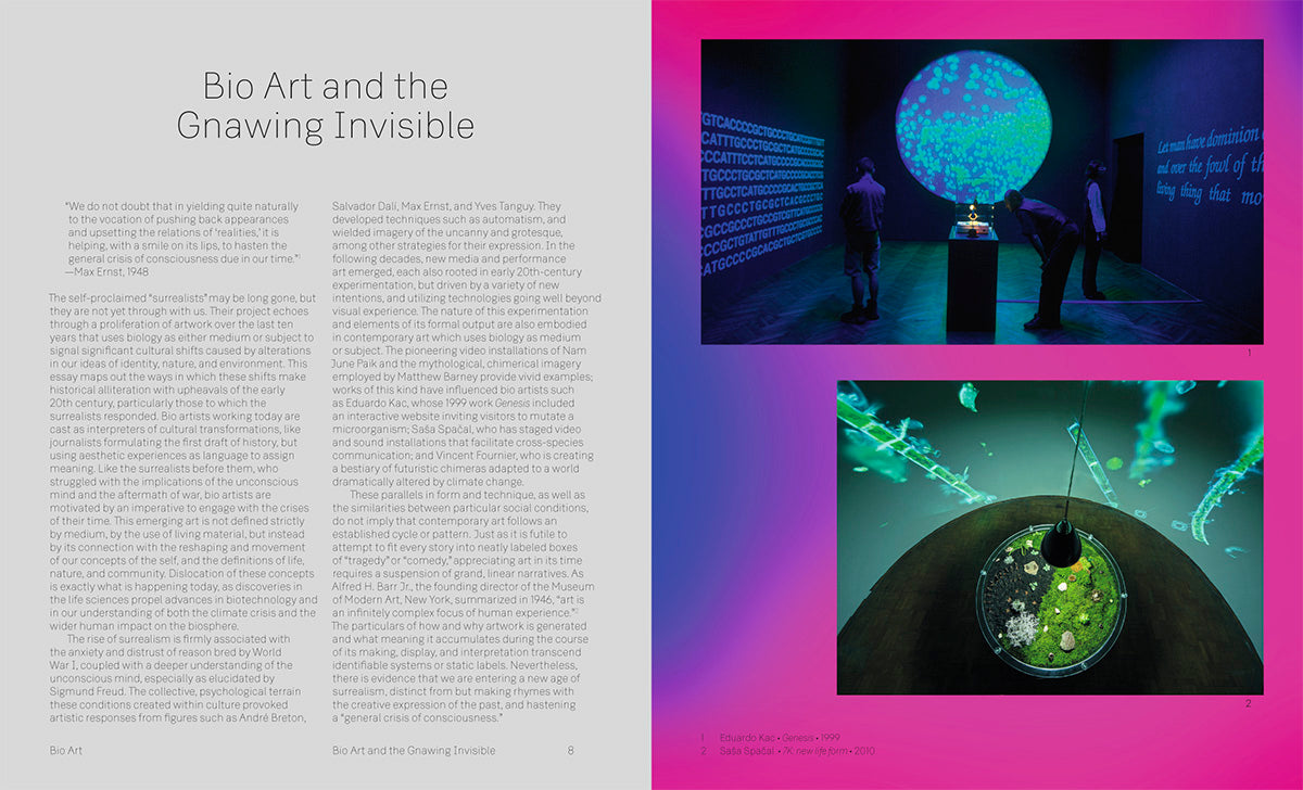 The results, both beautiful and alarming, offer new meanings for our lives in the wake of scientific discovery, and evoke an ominous future where human manipulation of the natural world has altered cultural norms.
