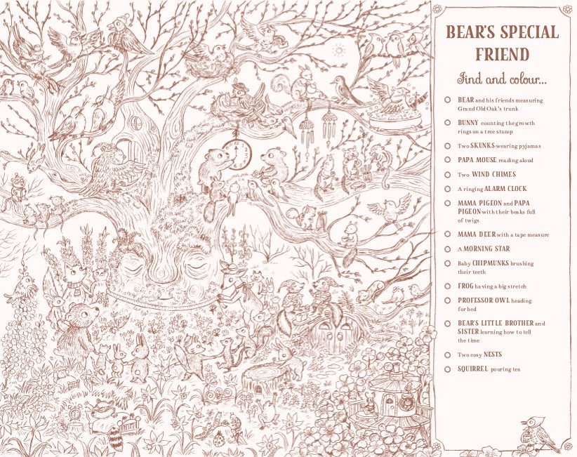 Join the fun in Brown Bear Wood with this enchanting colouring and spotting book.