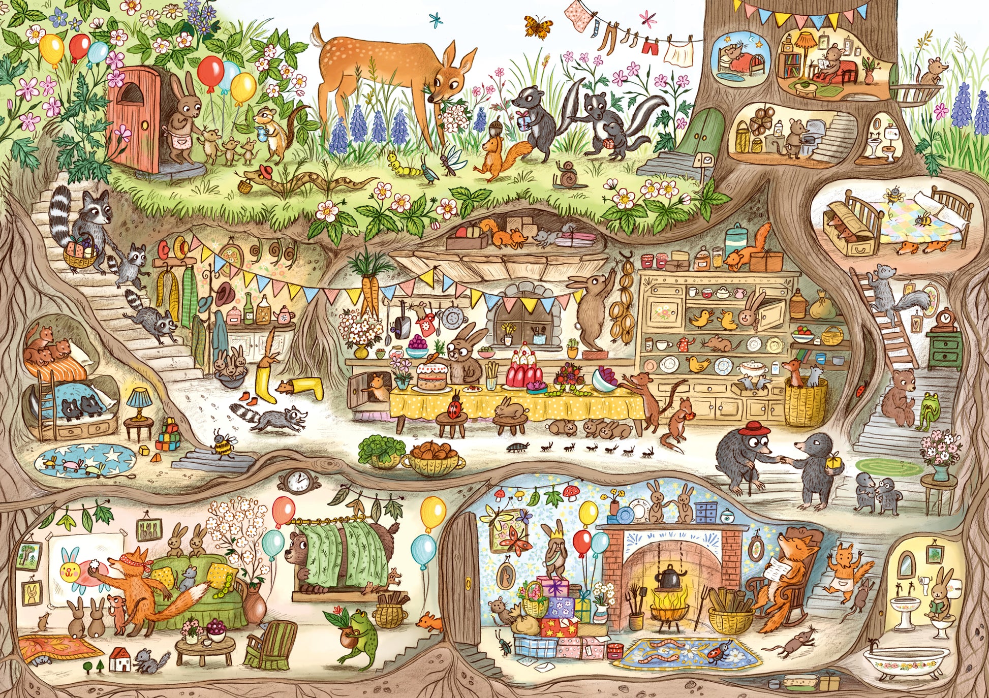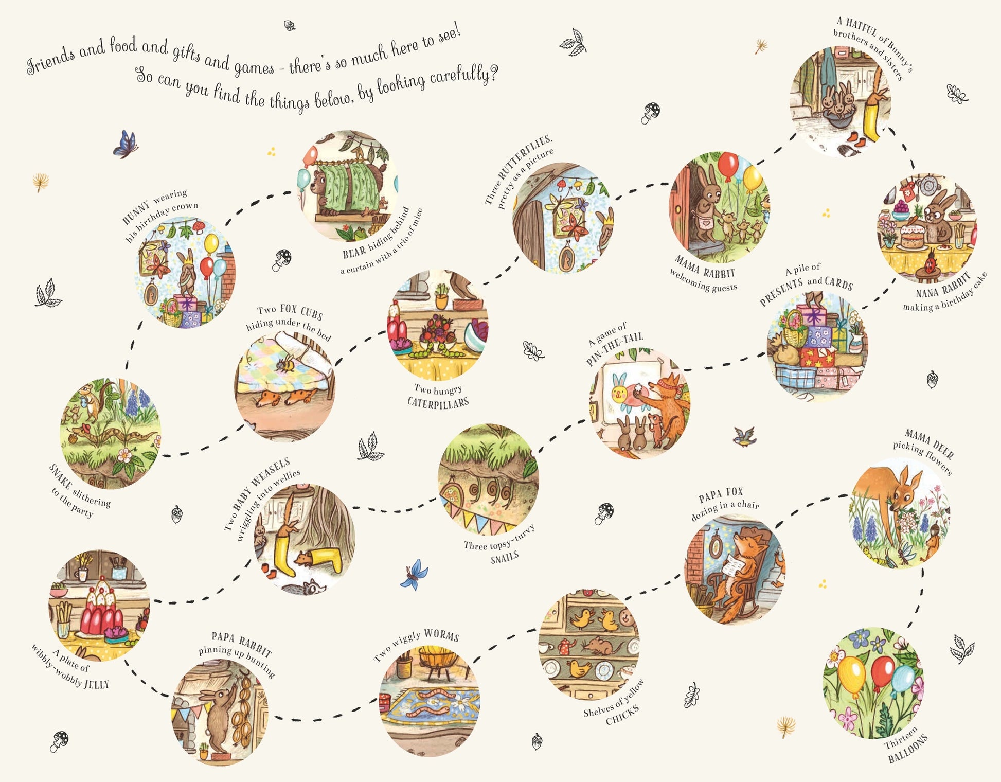 It's Bunny's birthday party! Featuring stunning artwork of a woodland scene, this jigsaw puzzle will open your eyes to new ways of seeing the natural world around you. Be amazed, piece by piece, as the wonders of Brown Bear Wood unfold. Including a fold-out poster which can be used as an aid to complete the puzzle and features twenty things to spot.