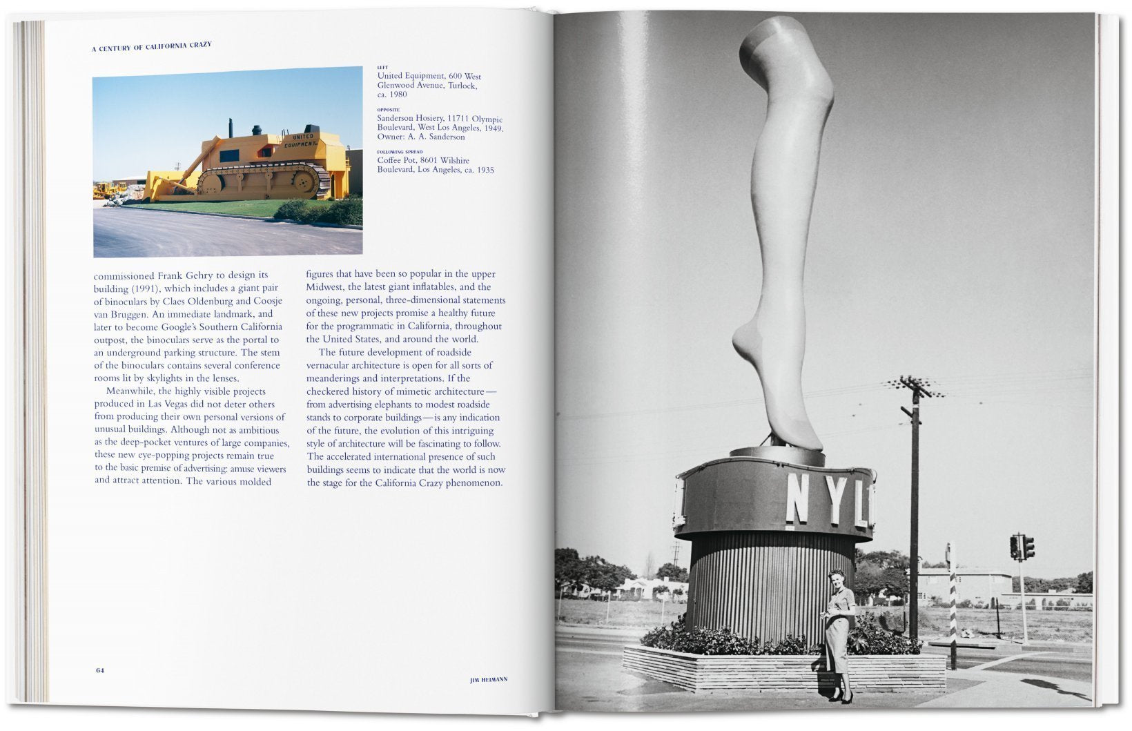 Yet, they flourished, especially along America's Sunbelt, and in particular, in Southern California, as proprietors indulged their creative impulses in the form of giant, eccentric constructions - from owls, dolls, pigs, and ships, to coffee pots and fruit. Their symbolic intent was guileless, yet they were marginalized by history. But, over the past 40 years, California's architectural anomalies have regained their integrity, and are now being celebrated in this freshly revised compendium of buildings, California Crazy.