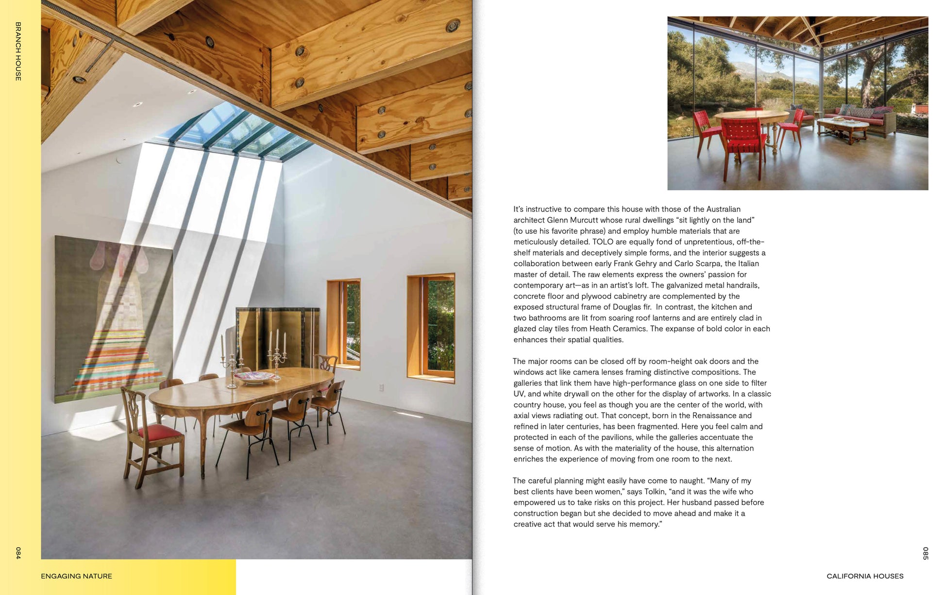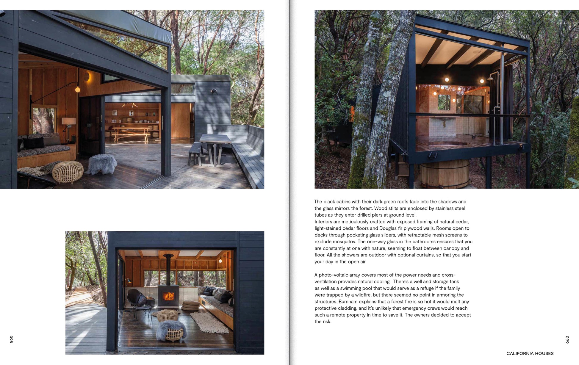 California is a hotbed of sustainable construction, as mandated by state legislation, and all of these houses employ active and passive strategies to reduce their carbon footprint. There's a strong emphasis on natural light and ventilation, thermal insulation and solar panels. Rainwater is harvested for irrigation. These are homes constructed to conserve energy, withstand earthquakes and, often, to resist wildfires, but without losing their aesthetic appeal.