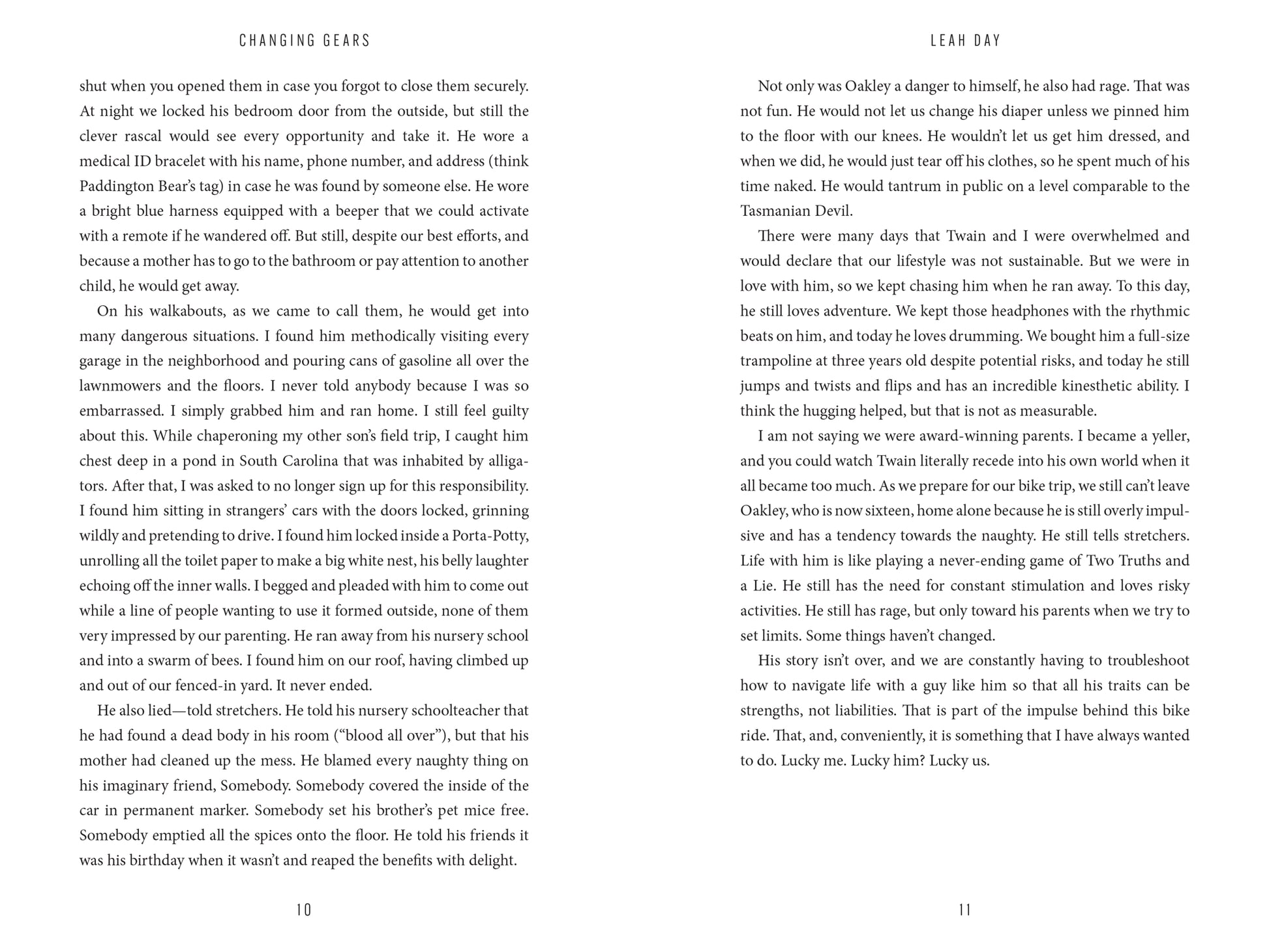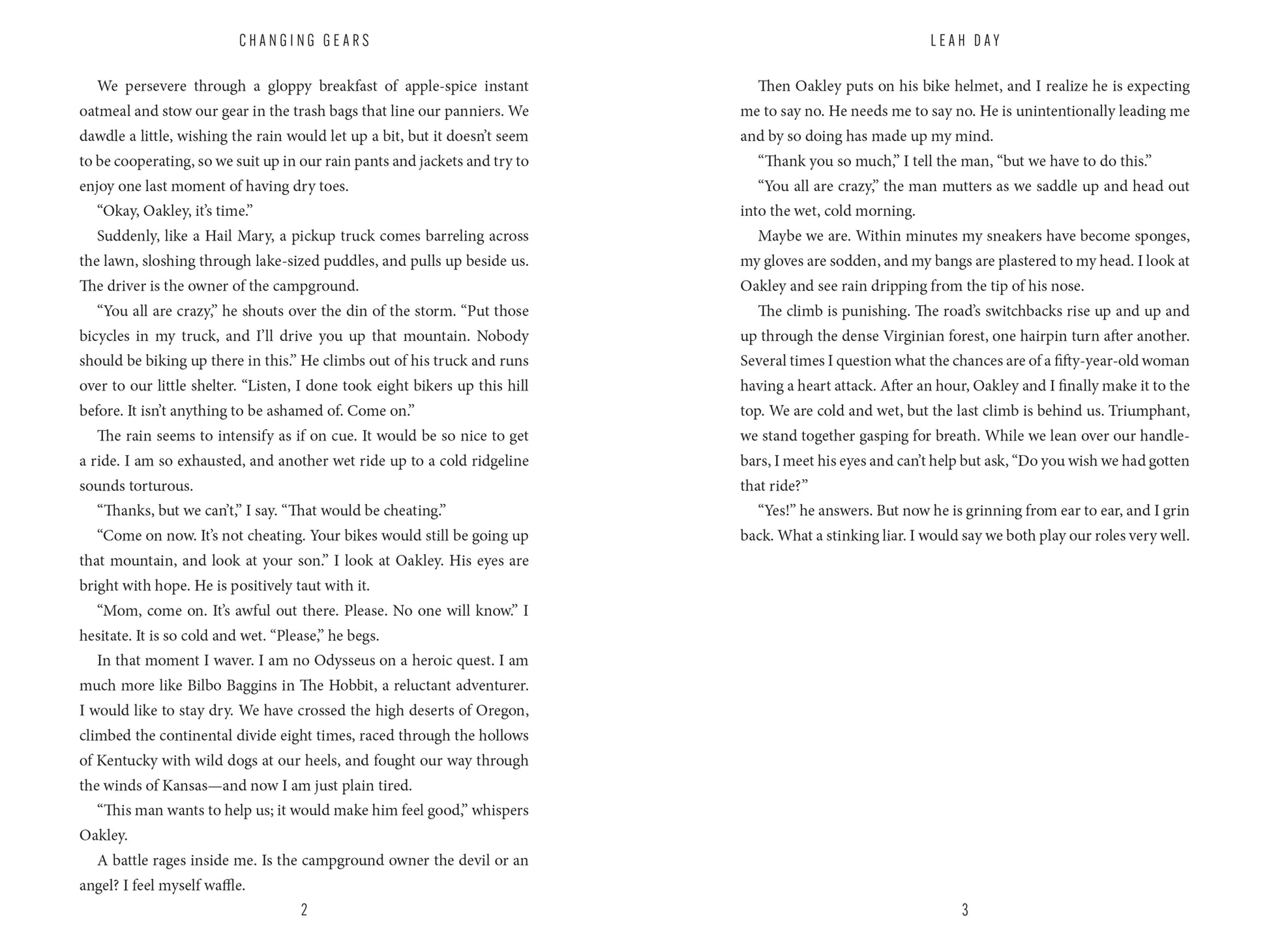 Leah Day lives on Peaks Island in Maine with her husband, four children, and dog, Cricket. A licensed clinical therapist and former Outward Bound instructor, she now owns and operates Lighthouse Bikes in South Portland, Maine, and documents her outdoor adventures on her blog bikemum.com.