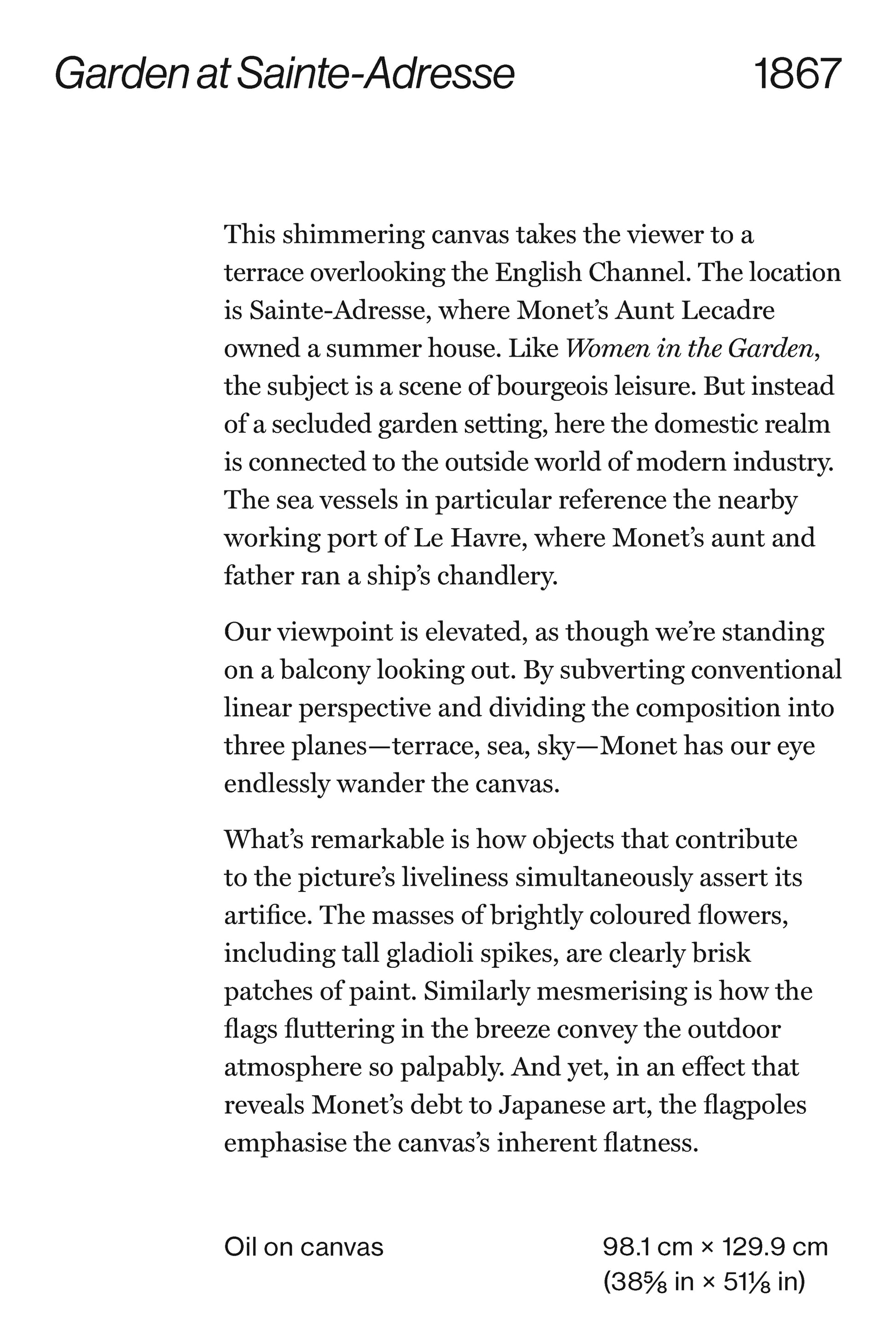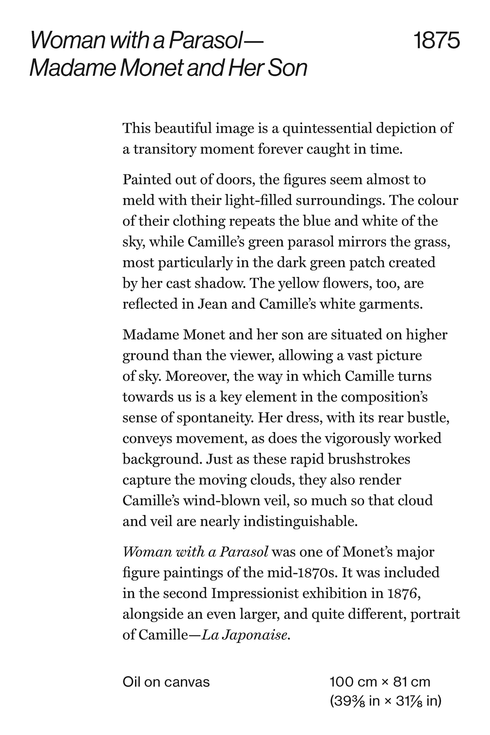 From the ethereal brushstrokes of Water Lilies and the windswept Women with a Parasol - Madame Monet and Her Son, to the bright red sun peeking through the haze of Impression, Sunrise, each card showcases the beauty and complexity of Monet’s style. Through detailed analyses of each artwork, you'll gain a deeper understanding of Monet’s techniques, symbolism, and life story, and how they influenced his art.