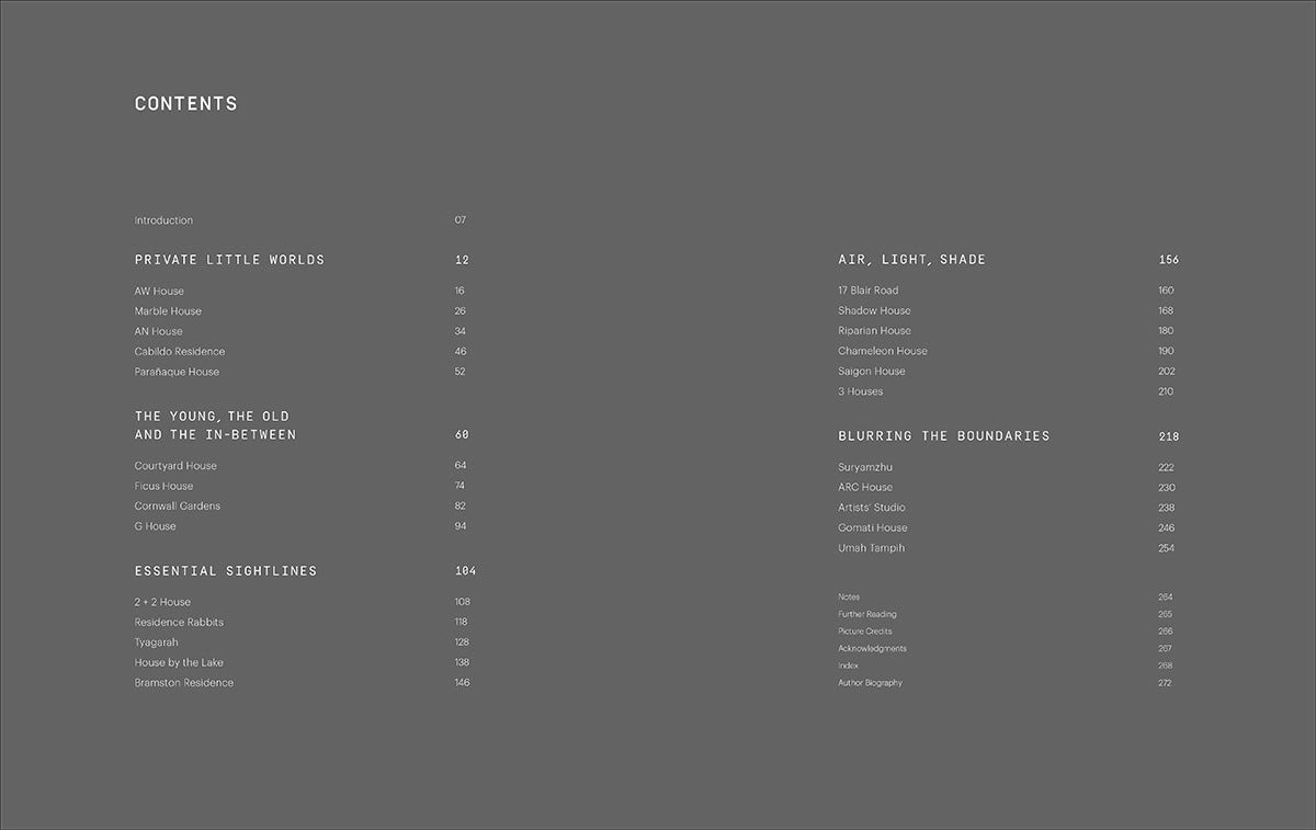 Structured by courtyard function, the book consists of five chapters - on privacy; multigenerational living; sightlines; light and ventilation; and living with nature - that are richly illustrated with photography as well as architectural illustrations showing courtyard positions within floor plans.