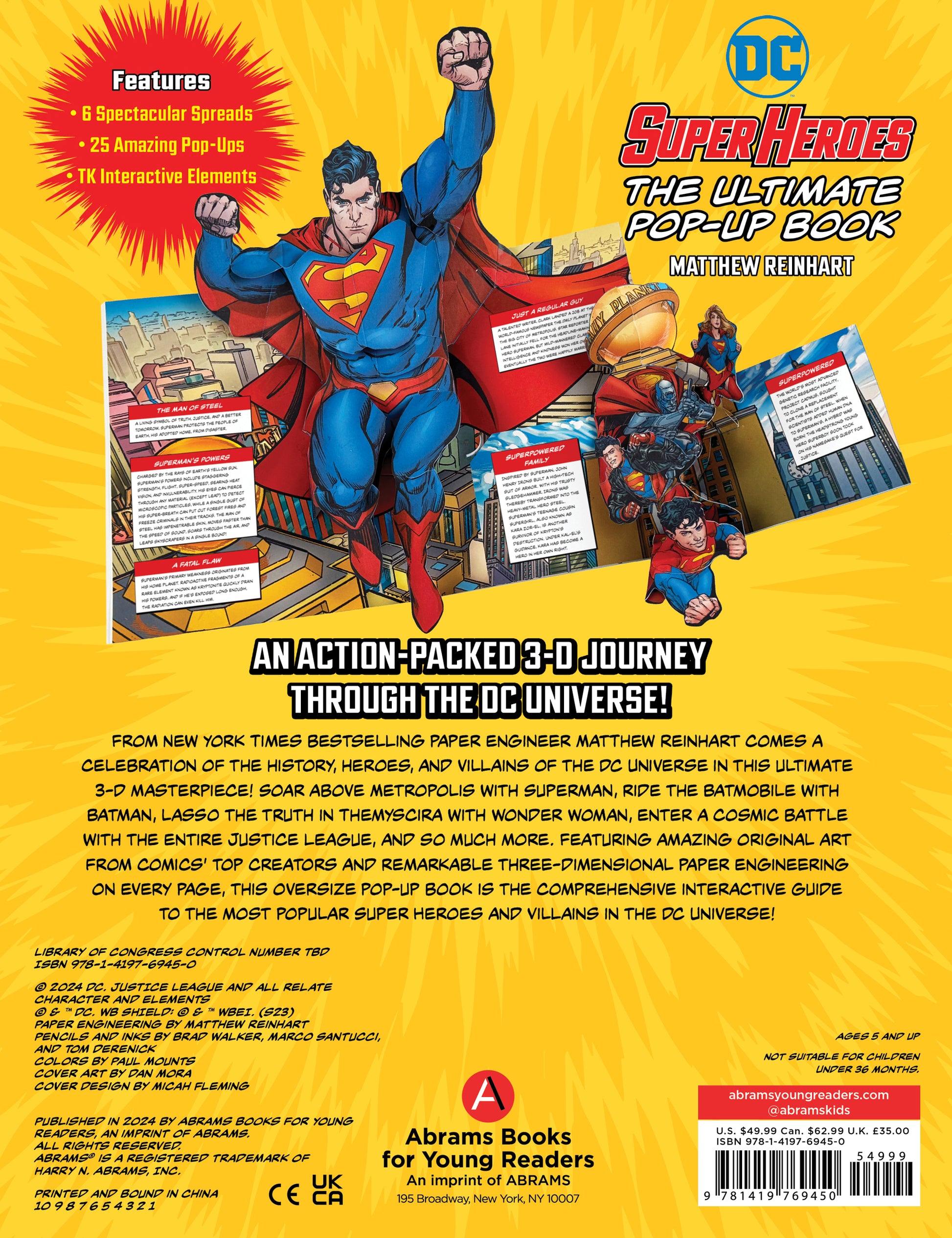 From New York Times bestselling paper engineer Matthew Reinhart comes the ultimate 3D masterpiece showcasing all your favorite comic book characters in DC Super Heroes: The Ultimate Pop-Up Book. Fly above Metropolis with Superman™, don a cowl and zoom through Gotham with Batman™, battle alongside the Amazons with Wonder Woman™, and so much more as the Justice League encounters villains such as Lex Luthor and the Joker. Featuring contemporary comics art and remarkable three-dimensional paper engineering on every page, this hefty pop-up book is a must-have for DC fans of all ages!