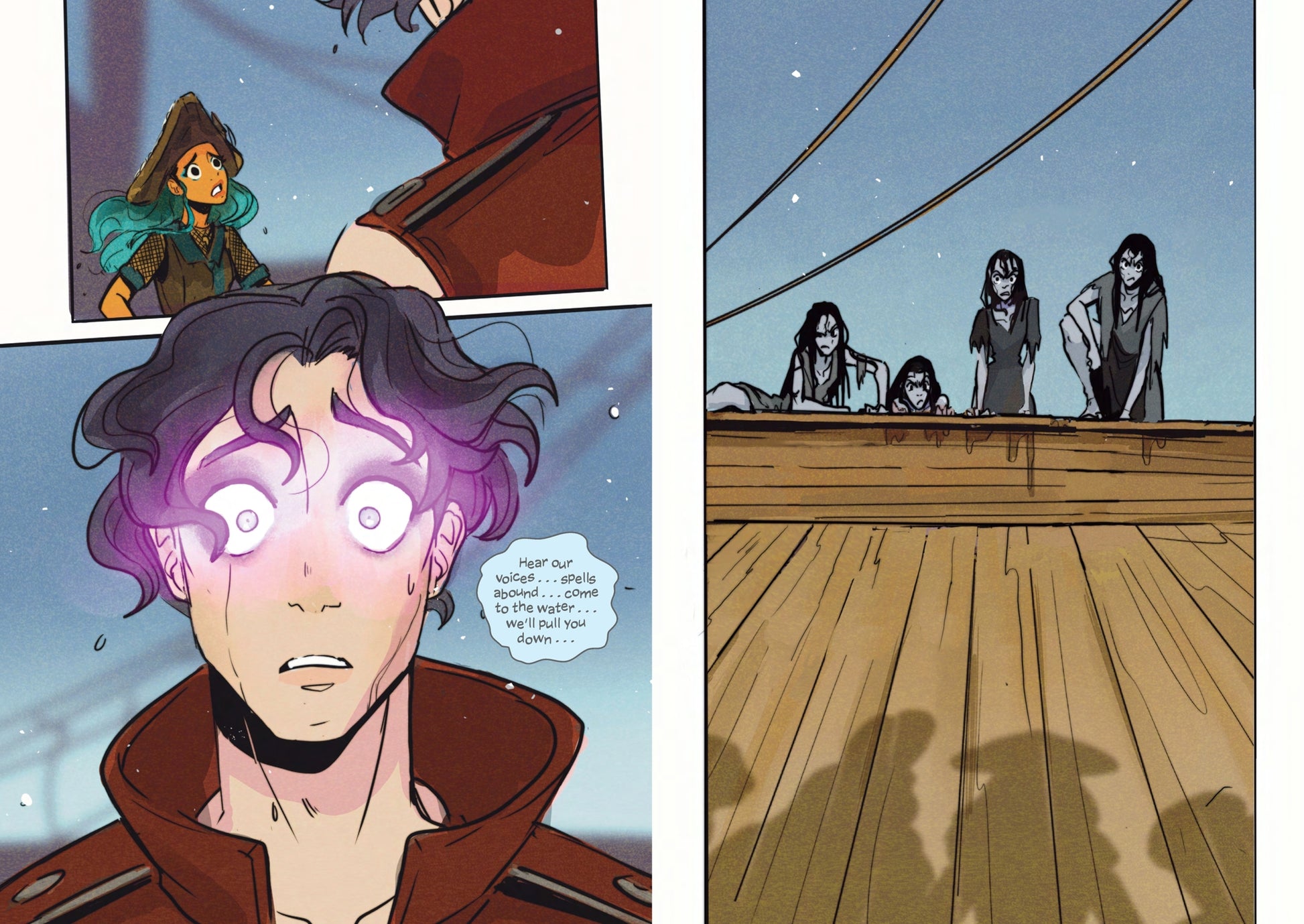 Despite her fears of becoming too much of a do-gooder, Uma accepts. It’s time to drop the Jolly Roger and set sail! As the Lost Revenge weathers dangerous storms—and even stormier emotions—the pirates quickly find that the missing students are a small part of a much larger conflict. Putting her seafaring knowledge, magic, and VK wits to the test, Uma must battle sea witches, her own first mate, and a vengeance-hungry rival ship. Will Uma be able to rescue the students and put a stop a looming threat before it descends upon Auradon? Or is it all already too late?