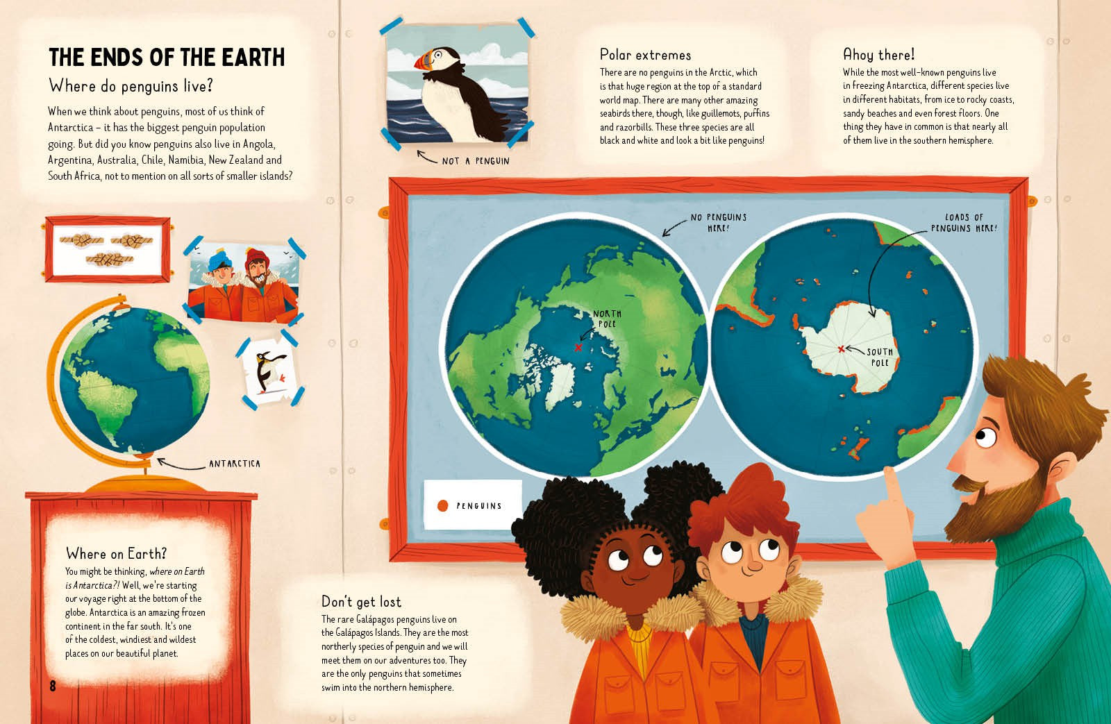A charmingly illustrated book that takes readers on a field trip to Antarctica and beyond to discover the secret life of penguins.