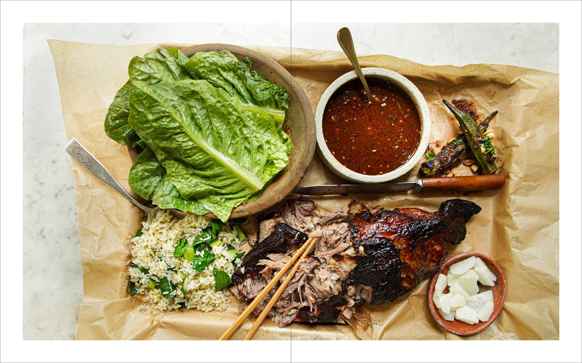 The delicious results include recipes like cornbread made with deeply flavored lap cheong (Chinese sausage) standing in for pork cracklins and char siu style pork lacquered with a sorghum syrup-bourbon glaze. Laced with ginger, the potlikker of gently braised watercress can throw down with that of any collard greens, and a soy sauce and shiitake mushroom gravy enhances traditional meatloaf. A deep section on the Southern and Chinese pantry sets the stage for the recipes to come, exploring the ingredients most common in both cuisines—from pork, rice, peanuts, okra, cabbage, and peaches to sorghum, ketchup, soy sauce, and five spice—and redefining what is considered Southern food.