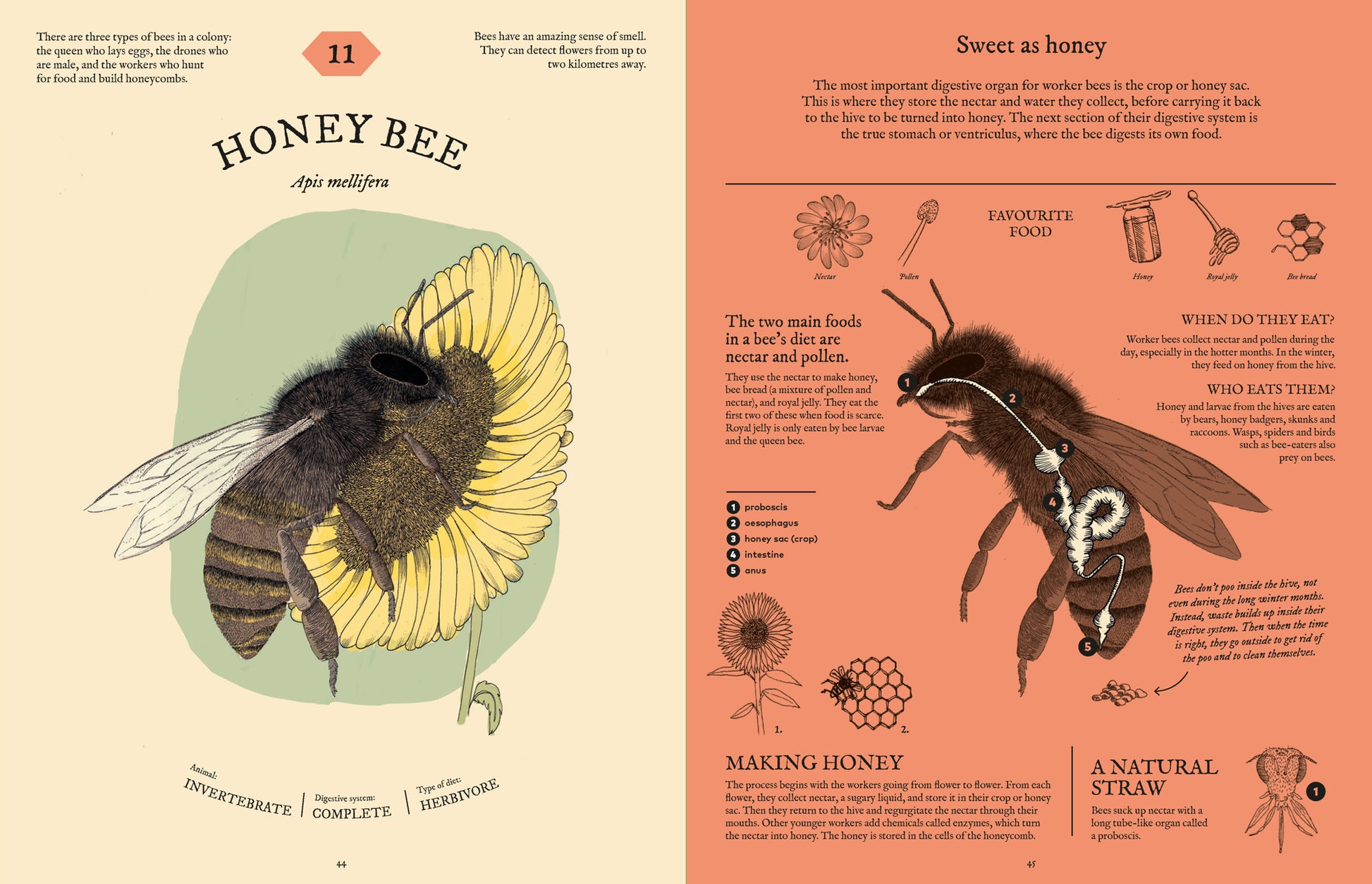 Food is what keeps every animal alive, including us. But eating is not as simple as it seems. Bodies need to break down the food they eat, and this is where the digestive system plays a starring role. A starfish, a giraffe, a vulture and a bee eat, digest and poo in very different ways, and there's always a reason why.