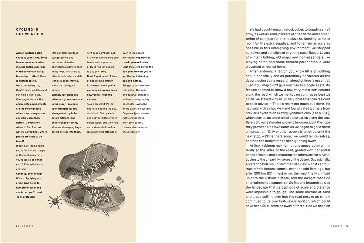 Cycling writer and photographer Joshua Cunningham spent eleven months cycling from London to Hong Kong, a journey that spanned twenty-six countries and 22,000 kilometres (13,670 miles). During his journey, he captured thousands of photographs of the landscapes, many barely touched by humans, and acquired a wealth of invaluable experience, from arranging travel and selecting the best bike to what to pack for each climate and terrain, and how to choose and navigate your route. Equal parts travelogue and practical guide, this exhilarating account divides the stages of his tour into five chapters, each focusing on a geographical environment: forest, desert, mountain, tropical and urban. Each chapter presents a text section on uncoated paper, featuring specially commissioned illustrations by Chris McNally, followed by a photographic album printed on art stock.